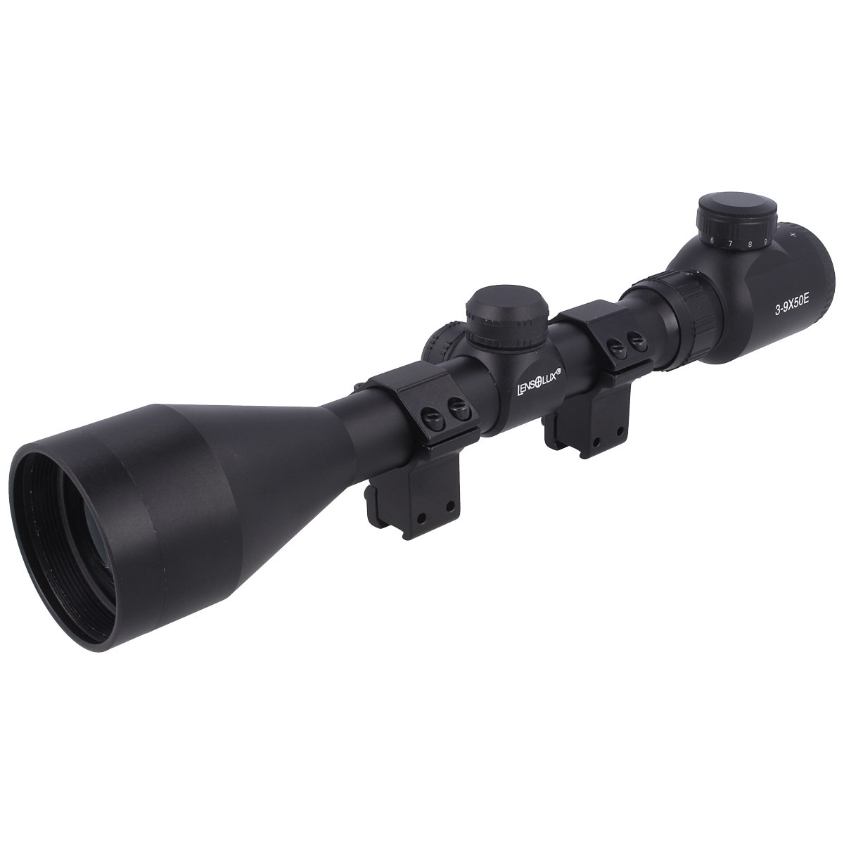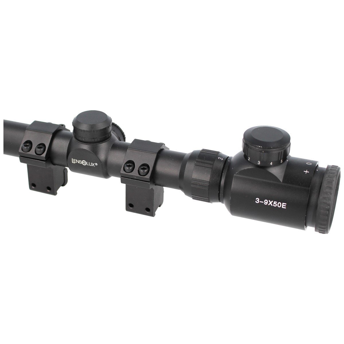 - 19312, luneta Lensolux z podświetlanym krzyżem 4 Red-Dot. Zmienne powiększenie 3-9x, średnica obiektywu 50mm. Szeroki kąt, doskonały jasny obraz. Celownik o znakomitych parametrach zmierzchowych i do celowania do mniejszych celów przy dużych odległościach