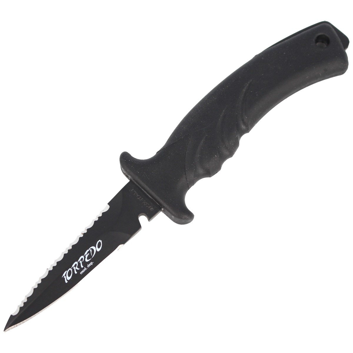 TORPEDO 9 BE BLACK, nóż dla nurka (back-up) ze stałą klingą pokrytą czarną matową powłoką. Wyprodukowany przez włoską firmę MAC Coltellerie. Nieodzowny element wyposażenia każdej wyprawy nurkowej.