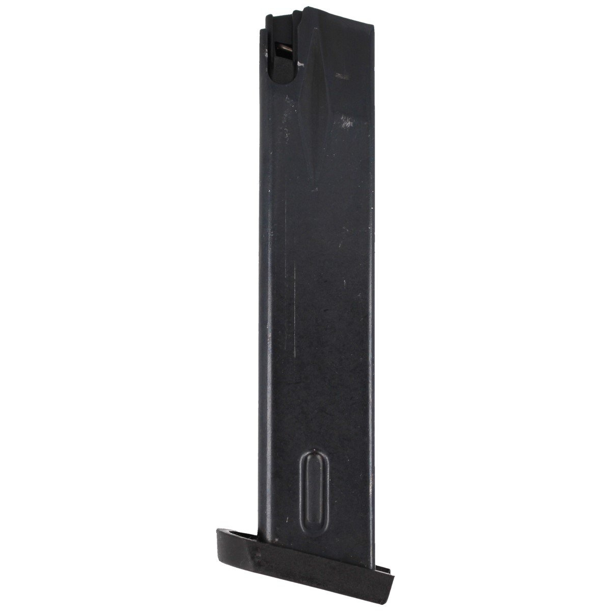 Magazynek - 15-sto (na zamówienie 25-cio) strzałowy, w kal. 9 mm. Wykonany jak w prawdziwym pistolecie ze stali czyni z niego wierną replikę broni palnej. Z uwagi, że jest to amunicja hukowa chwyt broni został dociążony w tylnej części aby zniwelować brak pocisków w nabojach.
