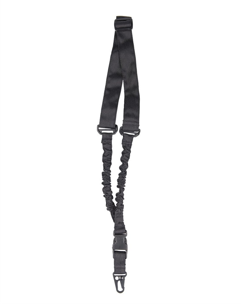 Zawieszenie jednopunktowe typu Bungee niemieckiej marki Mil-Tec, do przenoszenia broni długiej (karabinów, pistoletów maszynowych). Wykonane ze 100% polyestru w kolorze czarnym. Umożliwia szybką zmianę sposobu przenoszenia broni.