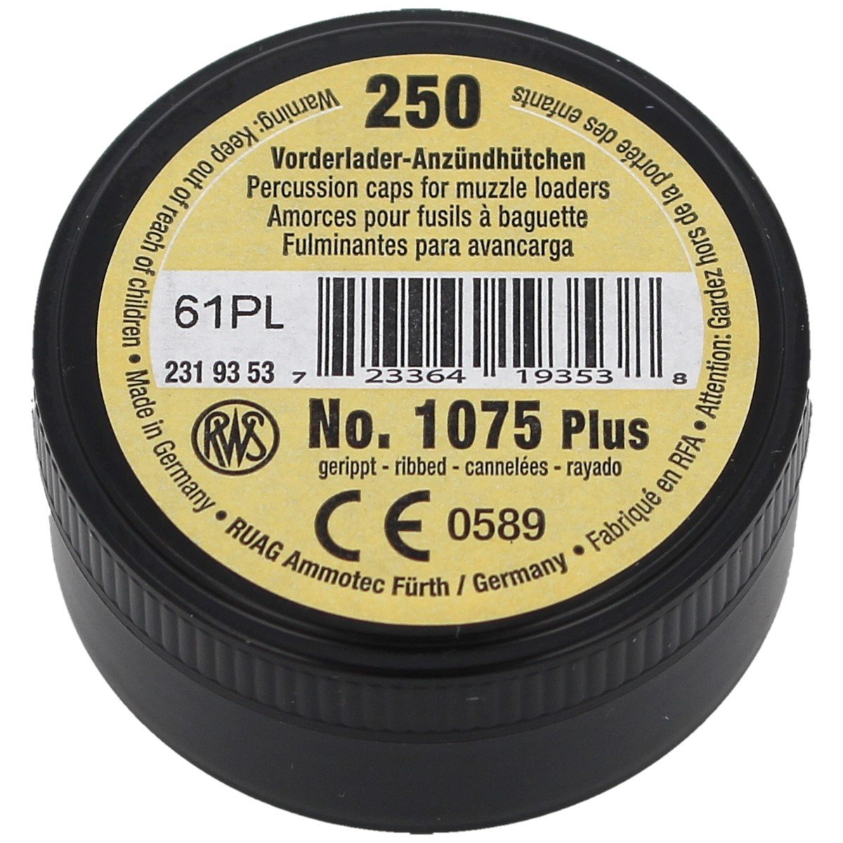 - Doskonałe kapiszony do kominków o wzmocnionym ładunku niemieckiej marki RWS No. 1075 PLUS (4 mm). Duże opakowanie 250 szt. Przeznaczone do broni czarnoprochowej: rewolwerów m.in. firmy Pietta (Colt Navy, Remington, Peacemaker) oraz pistoletów i karabinów.