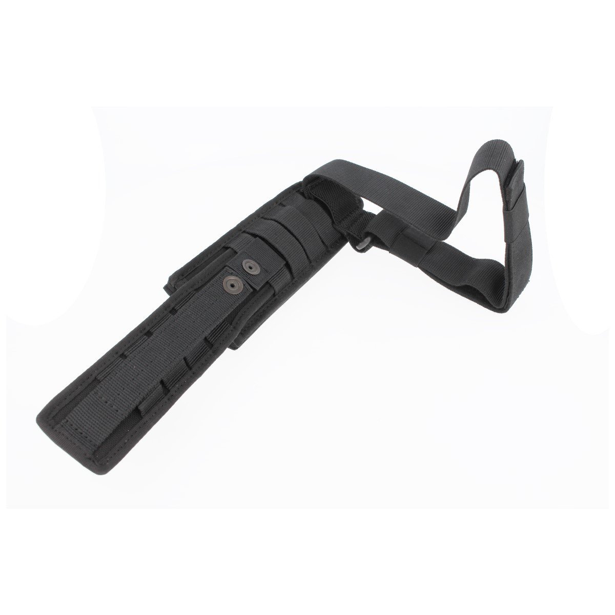 Pochwa - taktyczna z odpornego na przetarcia, wodoodpornego nylonu w kolorze czarnym, umożliwia szybkie dobycie noża. Zapinane na zatrzaski etui dobrze zabezpiecza nóż przed wypadnięciem. Kompatybilne ze standardem M.O.L.L.E. umożliwia mocowanie kabury pod taśmy systemu MOLLE (Modular Lightweight Load-carrying Equipment) oraz przenoszenie na pasie lub na oporządzeniu. Dolna część kabury z zapinaną na rzep Velcro taśmą, umożliwia mocowanie do uda.