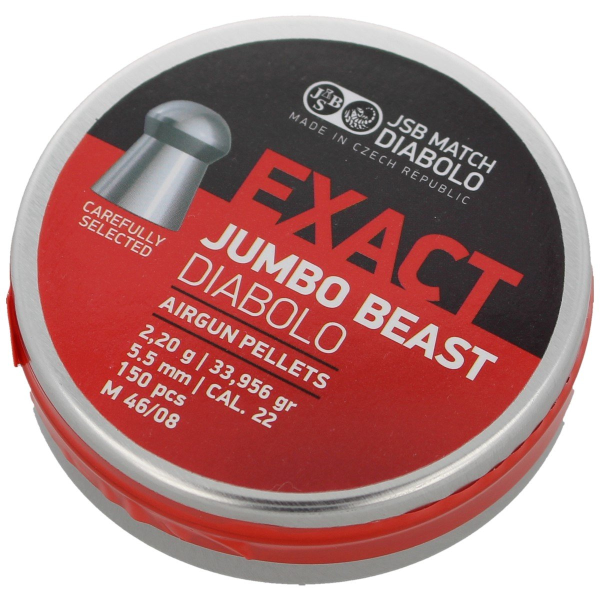 - Exact Jumbo Beast to najcięższy ze śrutów JSB Exact. Nadkalibrowy 5.52 mm z zaokrągloną główką Round. Nr 1 dla posiadaczy wiatrówek FAC i strzelców ceniących dużą moc, stabilność strzałów w każdych warunkach pogodowych. Do strzelania na duże dystanse.