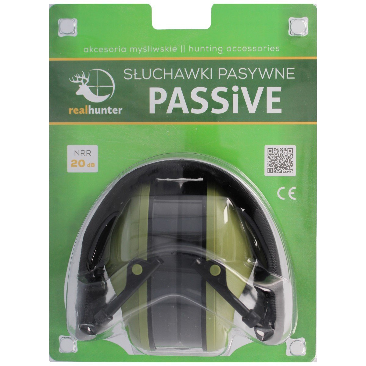 - RealHunter Passive Olive pasywne strzeleckie ochronniki słuchu z regulowanym pałąkiem. Wygodne, lekkie z ukośnie ściętymi czaszami dla wygodnego składu z broni. Idealne do ochrony słuchu dla myśliwych, strzelców poszukujących ochronnika w doskonałej cenie