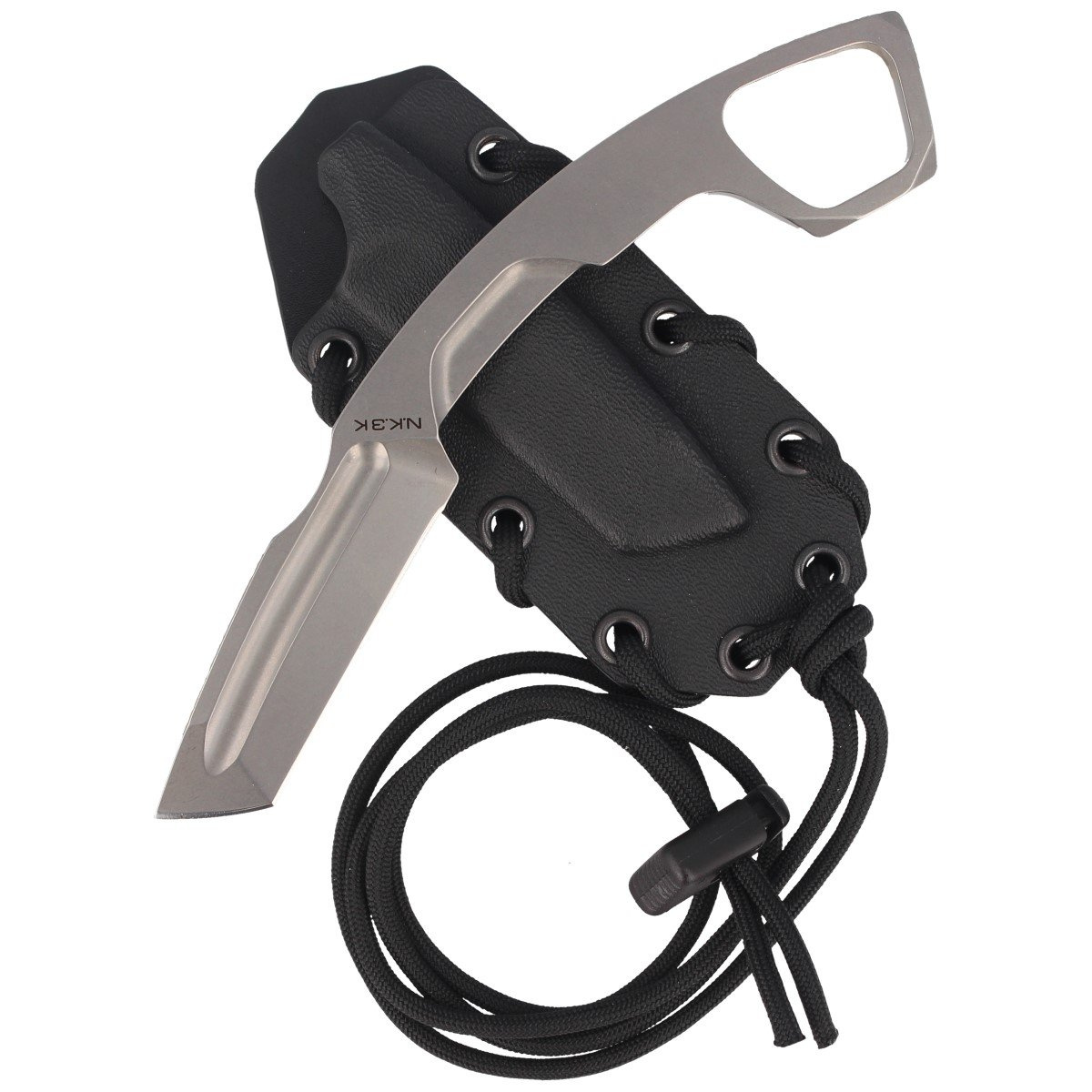 - N.K.3 K SW neck knife ze stałą klingą i rękojeścią zakończoną pierścieniem. Z obu stron klingi blood-graining slot, rowki zbrocza. Pochwa przystosowana do zawieszania na szyi, opcjonalnie na kamizelkę lub pas, co umożliwia używanie noża jako clinch pick'a
