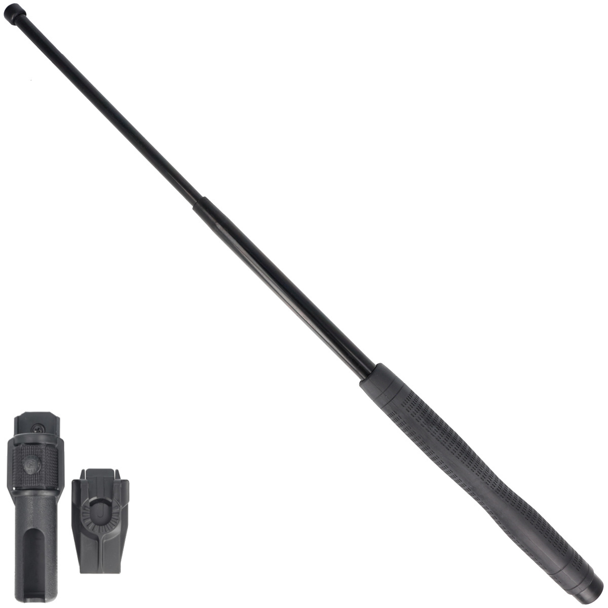 Kabura - model BH-55. Opatentowana konstrukcja umożliwia obrót uchwytu o pełne 360° oraz blokowanie w jednej z 16 pozycji. Pałka może być przenoszona złożona lub rozłożona w pozycji pionowej, poziomej jak i innej dowolnej. Etui wykonano z ciężkiego (heavy-duty), utwardzanego polipropylenu w kolorze czarnym.