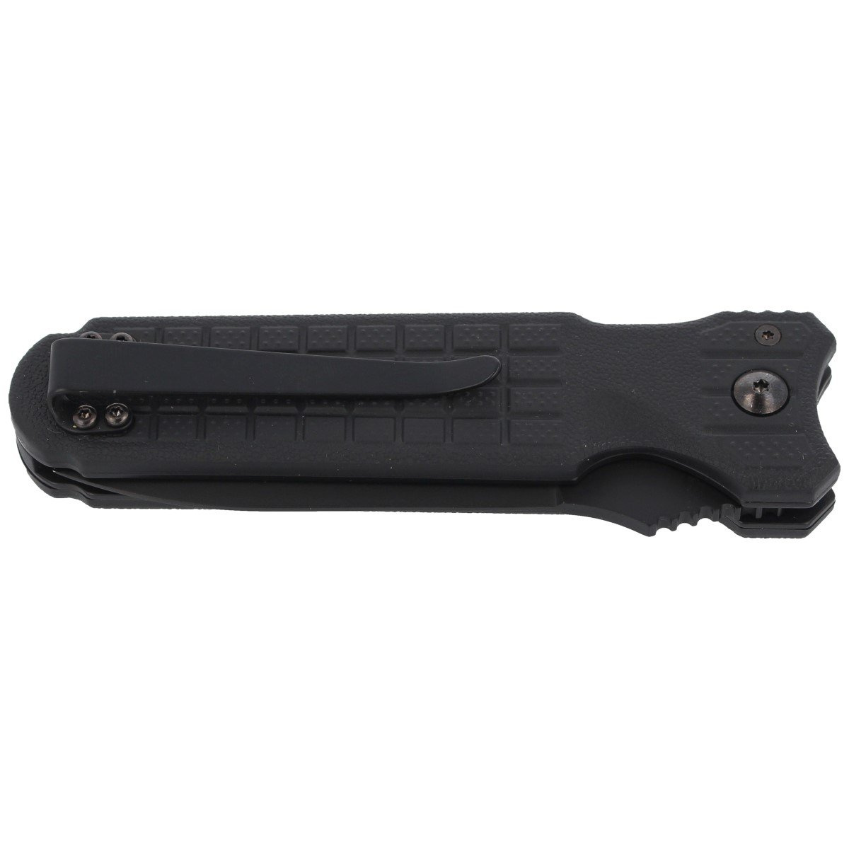 Rękojeść - w kolorze czarnym. Pokryta antypoślizgowymi, teksturowanymi okładzinami z tworzywa sztucznego FRN (Fiberglass Reinforced Nylon), nylonu wzmocnionego włóknem szklanym. Otwarta budowa open-backed upraszcza czyszczenie. Metalowy lewo / prawostronny klips do przenoszenia noża w pozycji tip-up (czubkiem do góry).