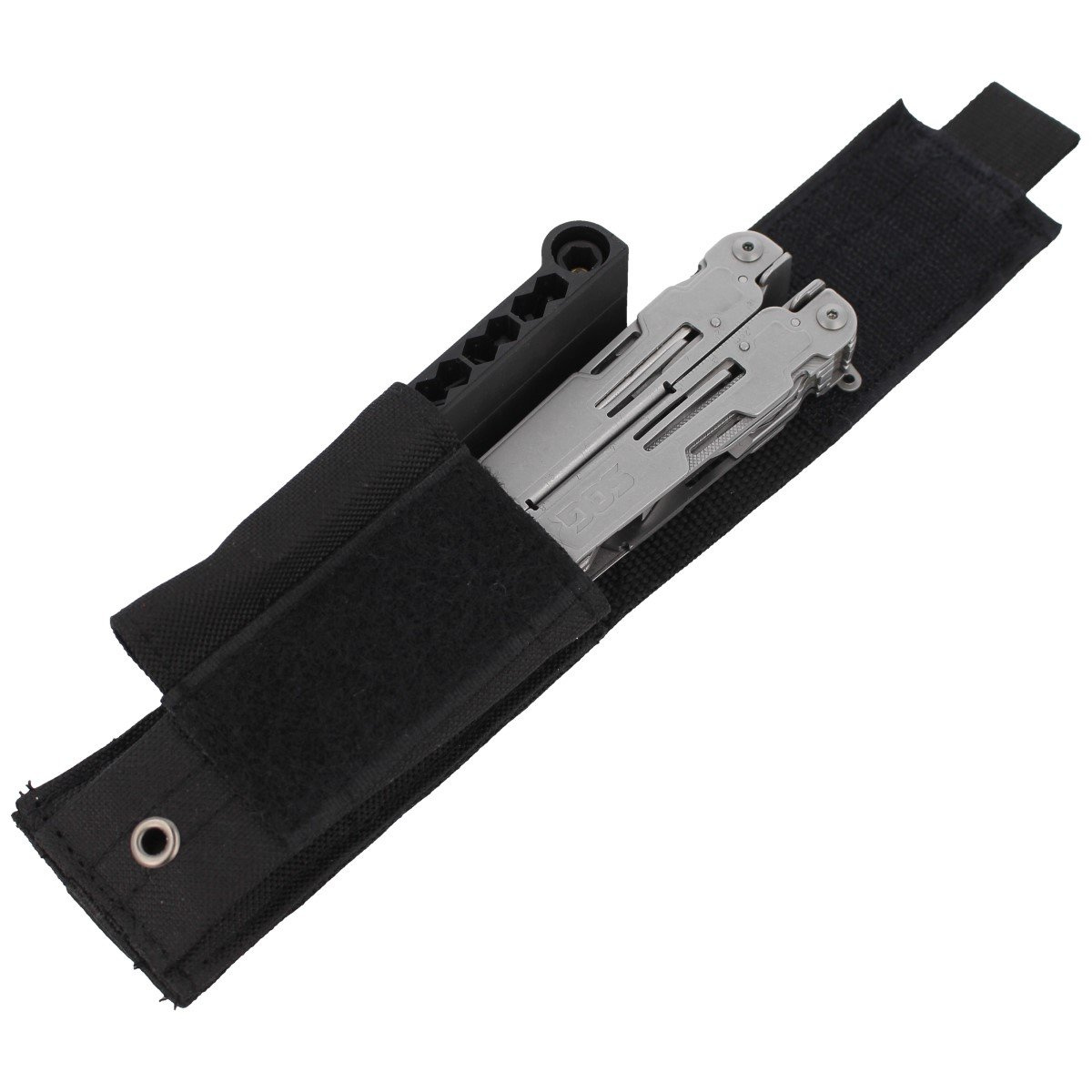 Etui - lekkie, wykonane z nylonu w kolorze czarnym. Pokrowiec dobrze zabezpiecza miltitool przed wypadnięciem. Umożliwia przenoszenie pochwy na pasie w pozycji pionowej.
