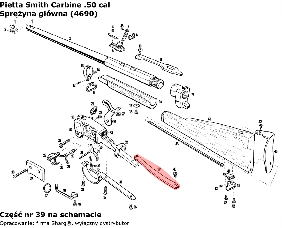 - 4690 (serwis) sprężyna główna włoskiej firmy Pietta. Przeznaczona do karabinów czarnoprochowych Smith Carbine Cavalry (SMT50) oraz Smith Carbine Artillery (SMTA50)...
