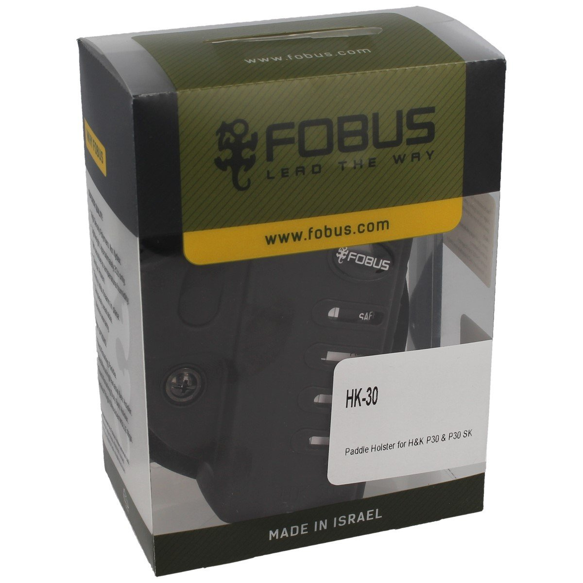 HK-30 (Paddle), kabura otwarta typ CH izraelskiej firmy Fobus. Kabura zabezpiecza broń przed uszkodzeniem, nie ma tendencji do przemieszczania się. Wykonana metodą wtryskową z odpornego na zarysowania, udar oraz temperaturę nylonu, tworzywa sztucznego o dużej gęstości. Dostępna w wersji dla prawo leworęcznych (LH).