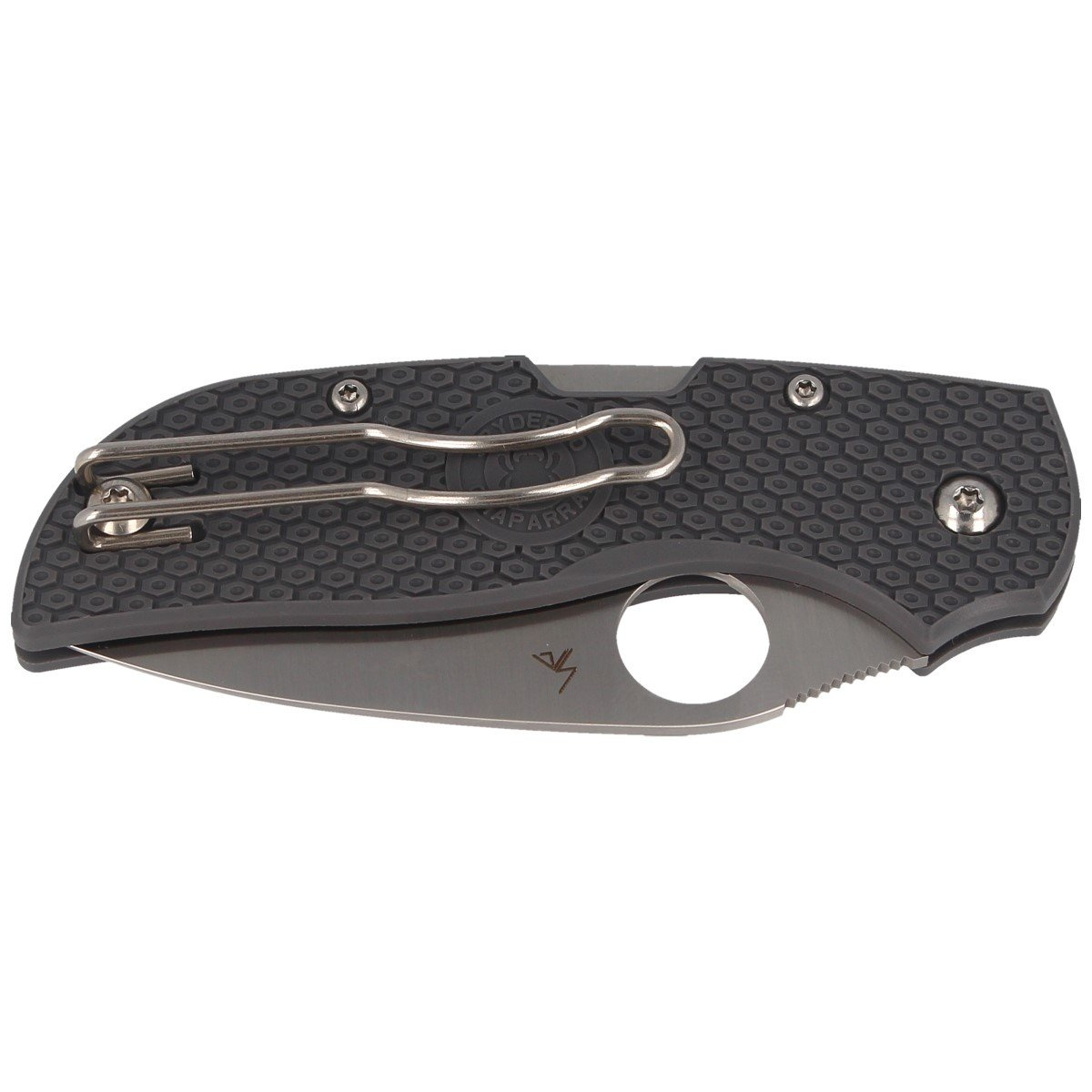 Głownia - grubości 2 mm o profilu Leaf Shaped (kształt liścia). Ostrze gładkie Plain, krawędź tnącą wyprowadzono szlifem pełnym płaskim (Full Flat Grind). Płaski szlif gwarantuje doskonałą geometrię krawędzi tnącej z ostrym czubkiem, redukuje wagę noża oraz prezentuje piękne satynowe wykończenie. Powiększone 14 mm okrągłe wycięcie SpyderHole (patent Spyderco) ułatwia otwarcie klingi zimnymi lub mokrymi dłońmi. Karbowane podparcia: pod kciuk, rampa (spine jimping) oraz (finger choil jimping), podcięcie pod palec wskazujący między rękojeścią a krawędzią tnącą ułatwiają panowanie nad nożem. Umieszczona po środku, mocna blokada głowni Back-Lock.