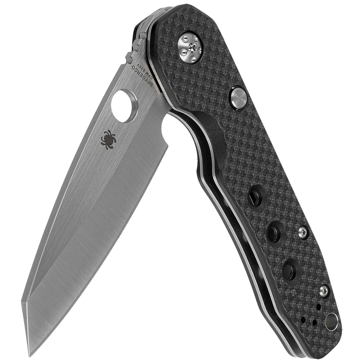 Smock Carbon Fiber / G-10, projekt, wielokrotnie nagradzanego designera przemysłowego Kevin'a Smock'a, który zwrócił na siebie uwagę swoimi wizjonerskimi, ręcznie wykonanymi nożami. Folder łączy usprawniony mechanizm Compression Lock z dwoma różnymi sposobami otwarcia głowni jedną ręką, otworu Spyderco Round Hole oraz eleganckiego flippera (flipper opener).