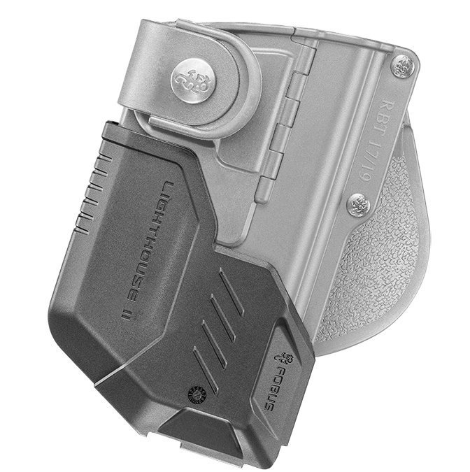 - Osłona na latarkę do pistoletu lub celownik laserowy do kabur Fobus RBT17G/19G. Do latarek/celowników Inforce APLC, Viridian C5L i E-series, Lasermax Spartan, Lasermax Uni, Crimson Trace Lightguard, Crimson Trace Rail Master, Surfire XC1, Streamlight TLR