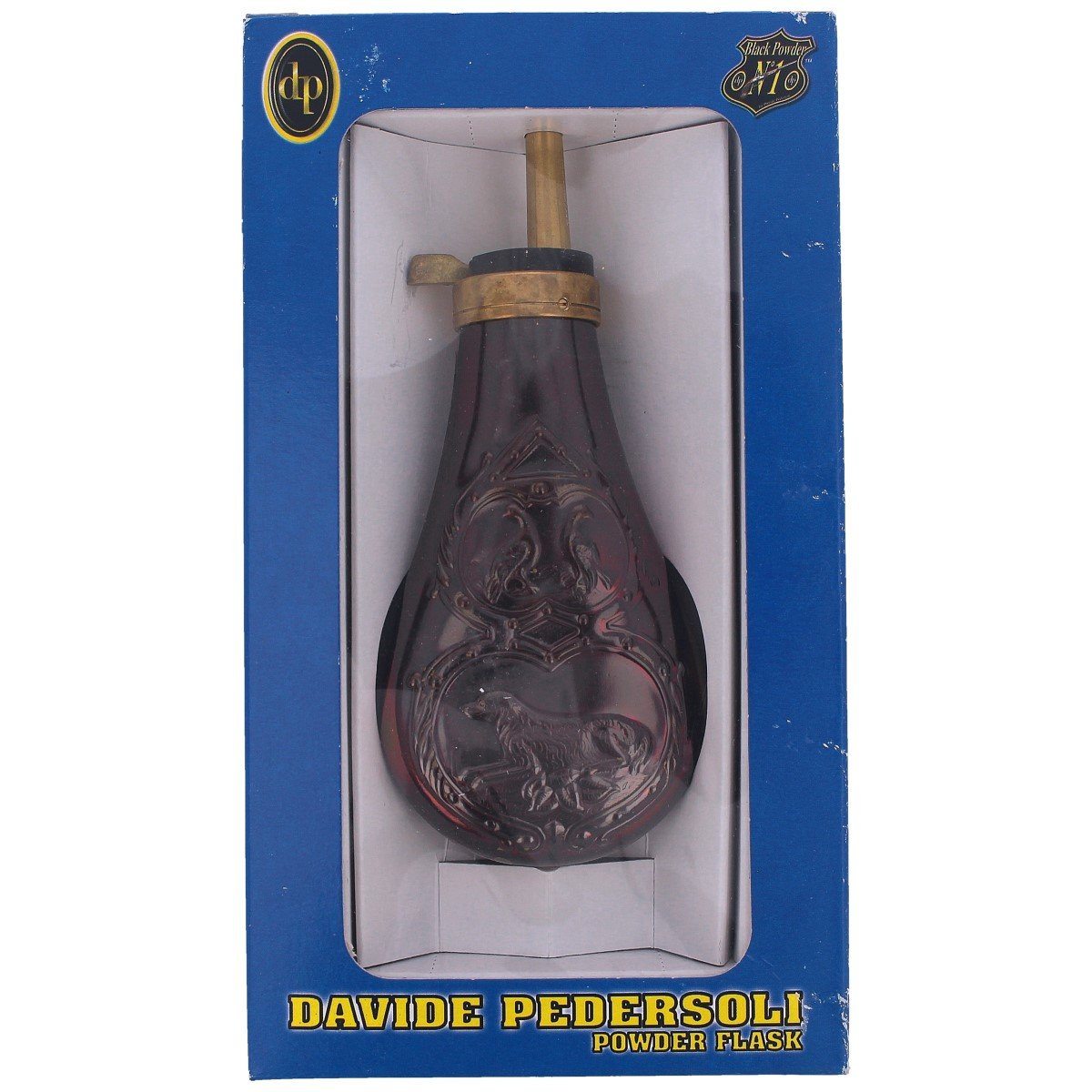 Remington Pattern Powder Flask .44 (030D529440) - prochownica z dozownikiem włoskiej firmy Davide Pedersoli. Zaprojektowana do rewolwerów czarnoprochowych Remington firmy Pietta i Uberti w kalibrze .44. Naważka prochu 24 grain. Prochownica z motywem myśliwskim przedstawiająca psa i 2 bażanty. Wykonana z lakierowanej miedzi oraz dozownikiem z mosiądzu.