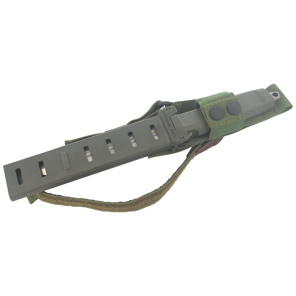 Pochwa - lekka, formowana wtryskowo skorupa z odpornego na uderzenia wzmacnianego Nylonu. Minimalistyczna kabura zabezpiecza nóż przed wypadnięciem (zatrzask z dźwignię spustu), a amortyzujący drgania system tłumienia zapobiega grzechotaniu ostrza podczas przemieszczania. Symetryczna konstrukcja pozwala na dostosowanie sposobu przenoszenia kabury zarówno dla praworęcznych jak i leworęcznych użytkowników poprzez przeniesienie dźwigni spustu na drugą stronę pochwy. Uniwersalna ażurowa konstrukcja skorupy otwarta na dole redukuje wagę zestawu oraz zapobiega zbieraniu się wody w środku oraz redukuje wagę zestawu. Zredukowane do minimum taśmy z nylonu umożliwiają szybkie mocowanie pochwy na pas lub pod taśmy systemu M.O.L.L.E. (Modular Lightweight Load-carrying Equipment). Dolna część pochwy z zapinaną na rzep Velcro opaską udową z gumowym wzmocnieniem zapobiega przemieszczaniu się pochwy na udzie.