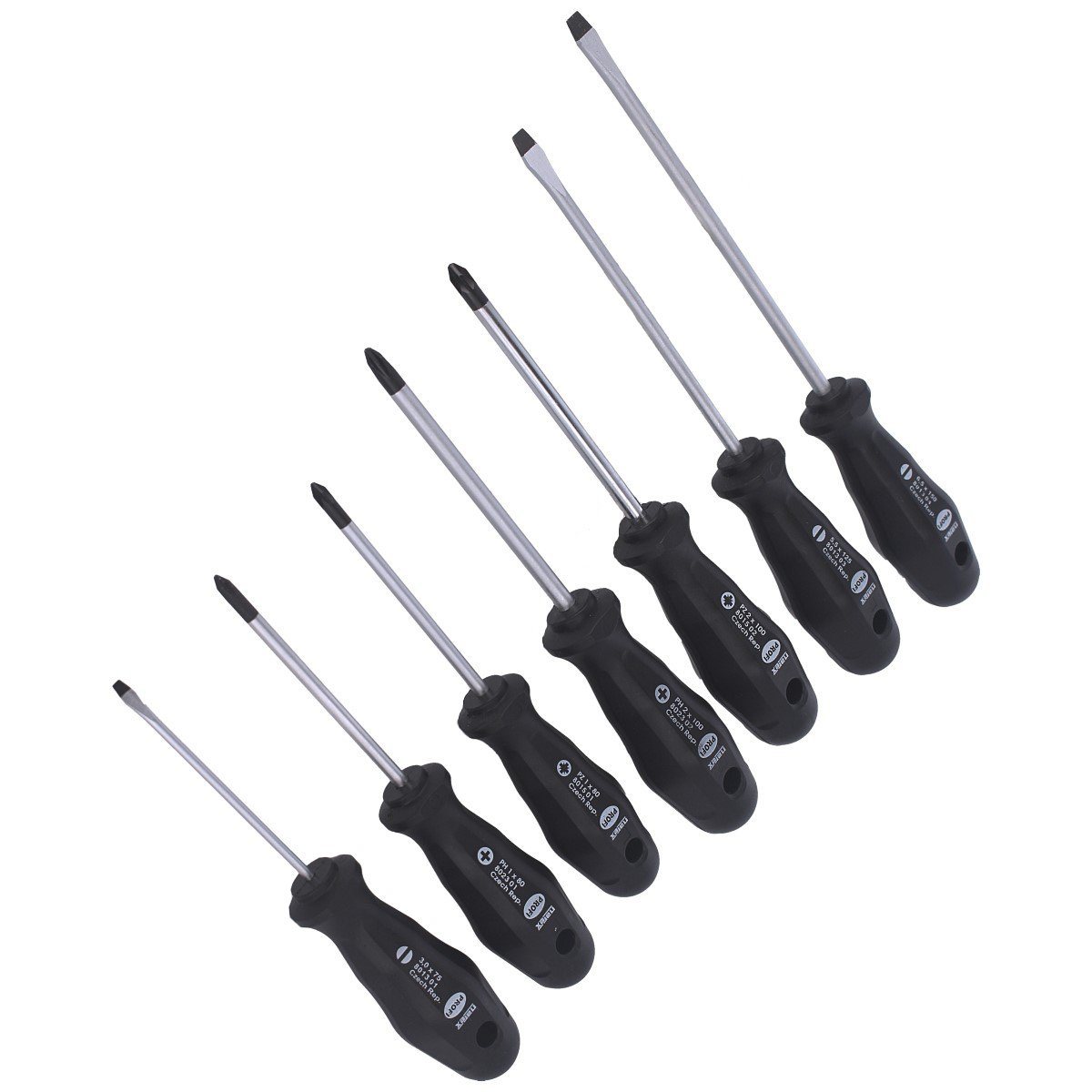 Kompletny zestaw – zawiera 7 wkrętaków dostosowanych do różnych typów śrub: