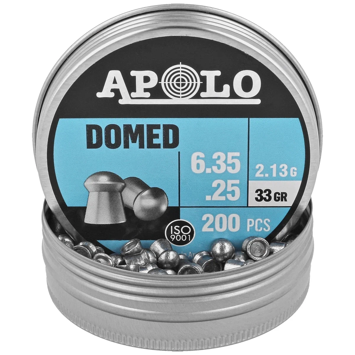Domed .25 (33gr) precyzyjny śrut w kalibrze 6.35 mm o wyśmienitej aerodynamice (płaskiej stabilnej trajektorii), retencji i dużej sile uderzenia. Współczynnik balistyczny Ballistic Coefficient (BC): 0.028. Używany do strzelań na dużych dystansach, stabilny tor lotu dzięki większej wadze oraz idealnemu umieszczeniu środka ciężkości. Wagę śrucin dobrano tak, że pasuje do mocnych wiatrówek pneumatycznych. Wykonany ze stopu o niskiej zawartości ołowiu pozostawia minimalny osad w lufie. Opakowanie 200 sztuk.