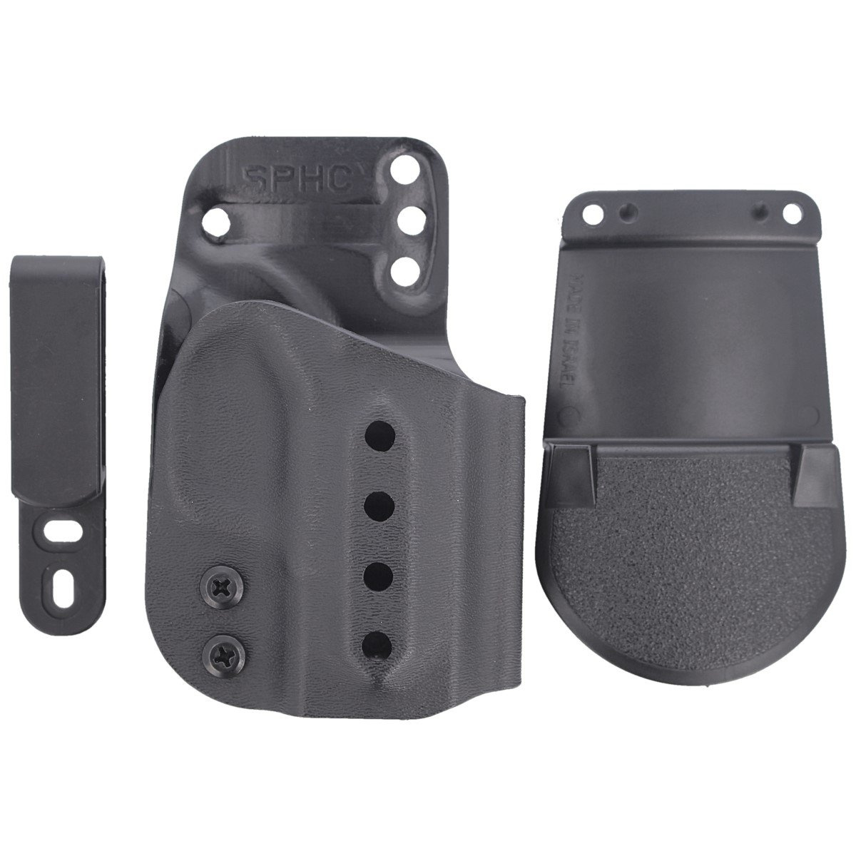 • SPHC kabura zewnętrzna OWB (Outside the Waist Band) i wewnętrzna IWB (Inside the Waist Band) w zależności od potrzeb. Do skrytego noszenia (IWB) mocowana od wewnętrznej strony spodni na pas. Śruba regulująca siłę docisku kabury. Do Springfield Hellcat 9mm
