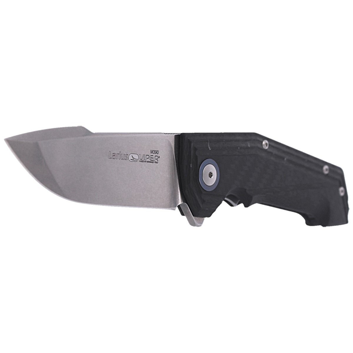- Larius Black Carbon Fiber, Stone Washed M390 wyjątkowy folder skierowany do wymagających odbiorców, łączy elegancki styl i najlepsze materiały. Projekt knifemaker'a Fabrizio Silvestrellego łączy nowoczesną estetykę z codzienną praktycznością użytkowania.