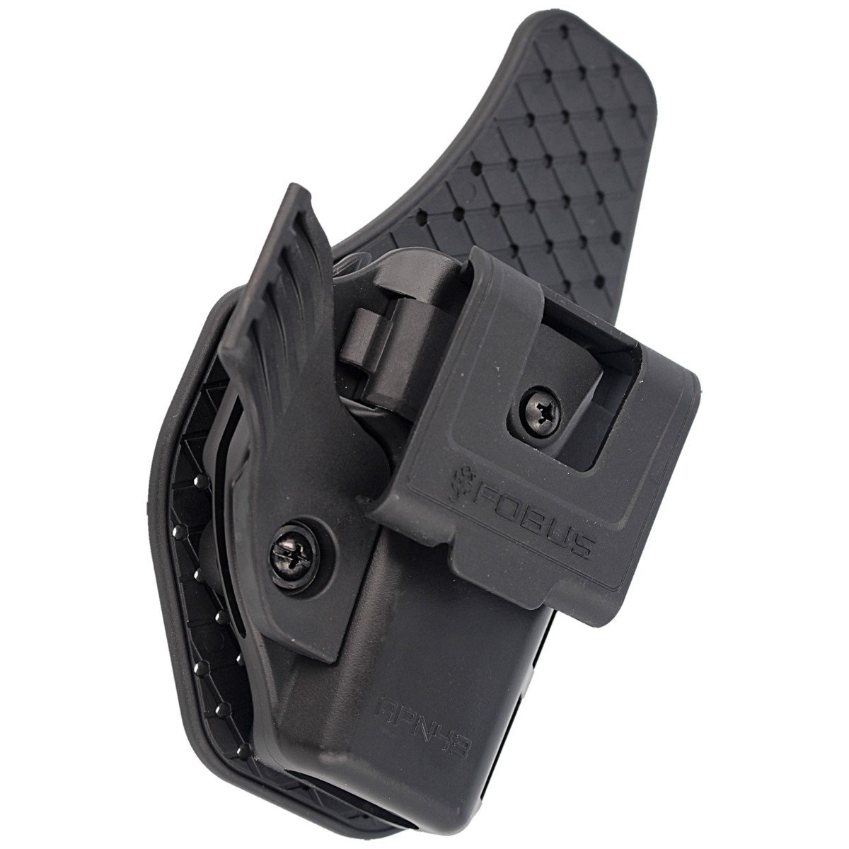 APN43 niskoprofilowa prawo / lewostronna kabura otwarta izraelskiej firmy Fobus typu FIT (dedykowana do broni). APN to kabura wewnętrzna IWB (Inside the Waist Band) zaprojektowana do skrytego noszenia po wewnętrznej stronie spodni, mocowana zaczepianym o pas hakiem J Hook lub kabura zewnętrzna typu OWB (Outside the Waist Band) przystosowana do standardowego przenoszenia na pasie. Bardzo trwała i lekka, doskonale wyprofilowana dla maksymalnego komfortu, świetnie przylega do sylwetki pozwalając na skryte przenoszenie broni, niezwykle wygodna podczas codziennego noszenia w ukryciu, wentylowana, można ją myć w całości. Przystosowania kabury zarówno dla prawo jak i leworęcznych użytkowników bez żadnych narzędzi.