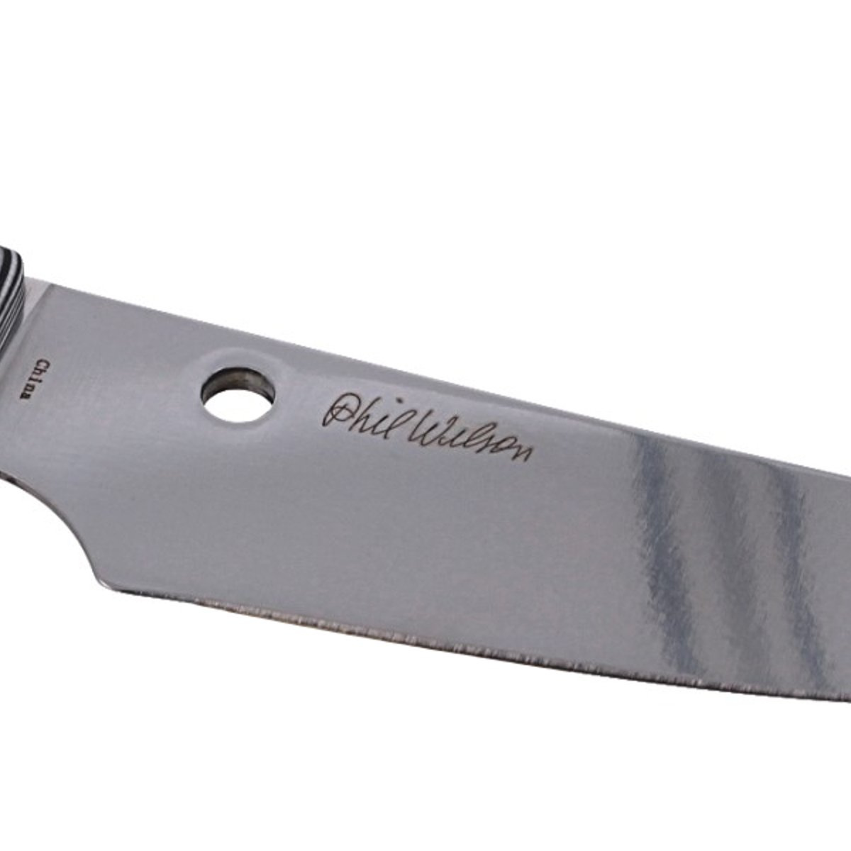 Bow River, nóż o stałym ostrzu i budowie Full Tang producenta noży custom Phila Wilsona, zapalonego myśliwego i wędkarza, który wykorzystuje zdobyte na tych płaszczyznach doświadczenie w każdym ze swoich projektów. Bow River to efekt współpracy ze Spyderco, skierowany do miłośników przygód na świeżym powietrzu dysponujących mniejszym budżetem.