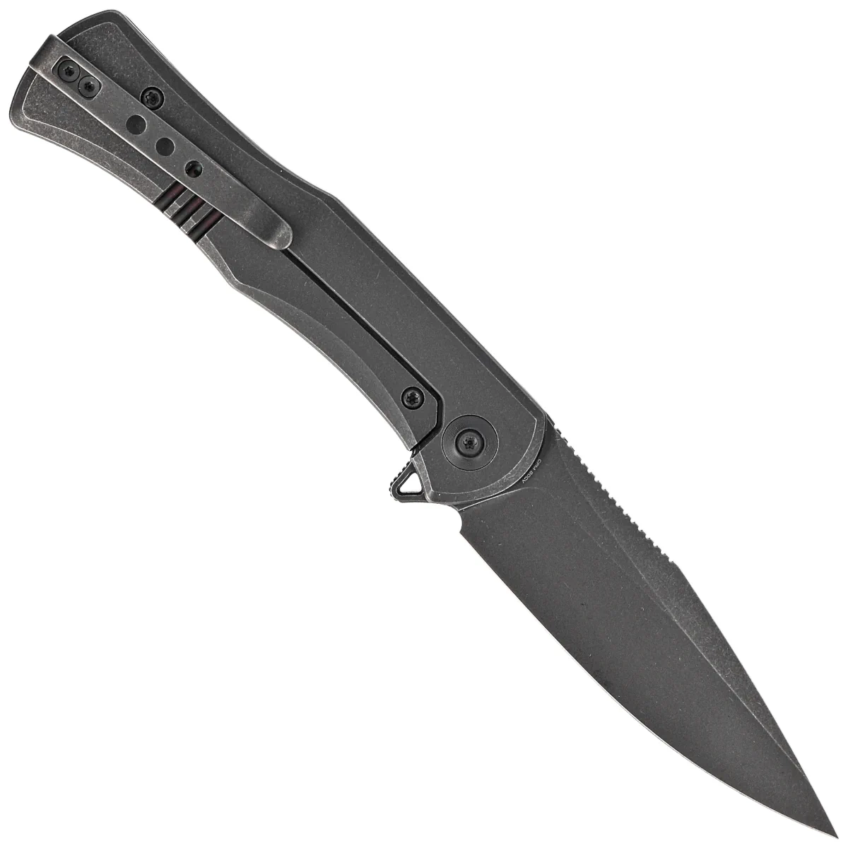 Głownia - typu drop point wykonano ze stali CPM 20CV, obecnie jednej z najlepszych stali narzędziowych na świecie. Otwierany za pomocą flippera, dzięki czemu mogą z niego bez problemu korzystać osoby prawo i leworęczne. Za gładką pracę mechanizmu otwierającego odpowiadają ceramiczne łożyska kulkowe. Niewielka grubość ostrza w połączeniu z wysokim, płaskim szlifem daje nam właściwości tnące niemal na poziomie brzytwy. Na grzbiecie znajdziemy perfekcyjnie wykonany "jimping", nacięcia na których możemy położyć palec poprawiając w ten sposób uchwyt i kontrolę nad nożem podczas używania. Klinga została wykończona metodą "black stonewash". Całość blokowana jest sprawdzoną i popularną blokadą frame lock ze stalową wkładką zabezpieczającą przed wycieraniem czoła blokady.