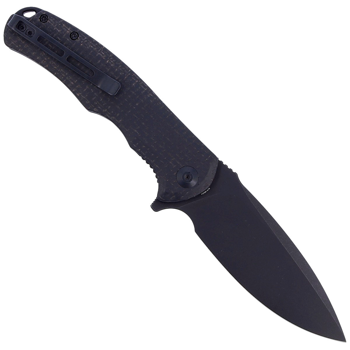Głownia - szeroka, typu Drop Point z wyraźnie zaznaczonym brzuchem, wykończona metodą Black Stonewashed. Masywna klinga w połączeniu z wysokim, płaskim szlifem (Flat Grind) daje doskonałą geometrię krawędzi tnącej oraz ekstremalną wydajność cięcia. Ceramiczne łożyska kulkowe wspomagają płynną pracę mechanizmu otwierającego klingę, którą można otworzyć za pomocą szybkiej płetwy flippera (index-finger flipper). Po otwarciu płetwa tworzy mini-gardę zapobiegającą ześlizgnięciu się dłoni na ostrze. Finger choil, podcięcie pod palec wskazujący między rękojeścią a krawędzią tnącą oraz upper jimping karbowany fragment grzbietu głowni pod kciuk ułatwiają bezpieczne trzymanie podczas precyzyjnych zadań. Całość blokowana jest sprawdzoną blokadą liner lock.
