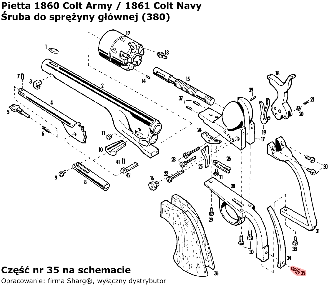 Śruba do sprężyny głównej Colt Navy 1851, Colt Army 1860, Remington 1858 (380)