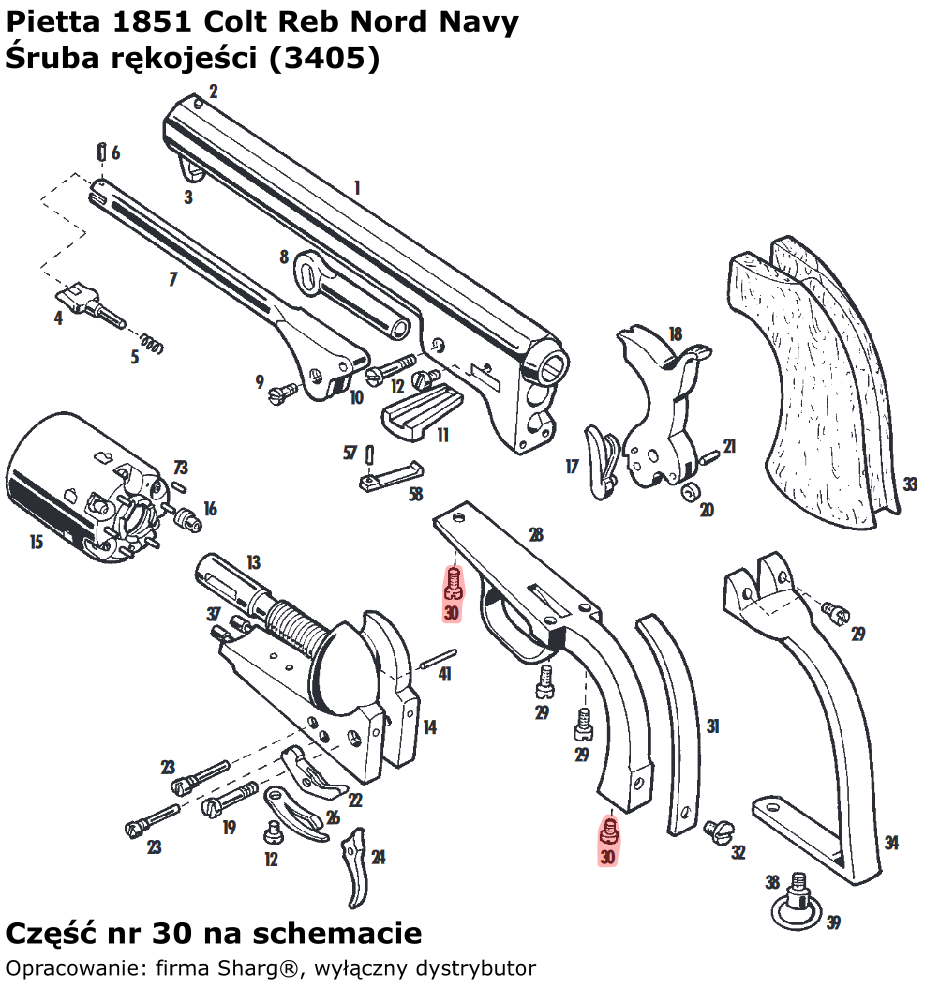 • 3405 (serwis) śruba rękojeści firmy Pietta. Do rewolwerów czarnoprochowych: 1836 Colt Paterson, 1851 Colt Reb Nord Navy, 1860 Colt Army, 1861 Colt Navy oraz 1858 Remington New Model Army (.44 cal) / Navy (.36 cal)...