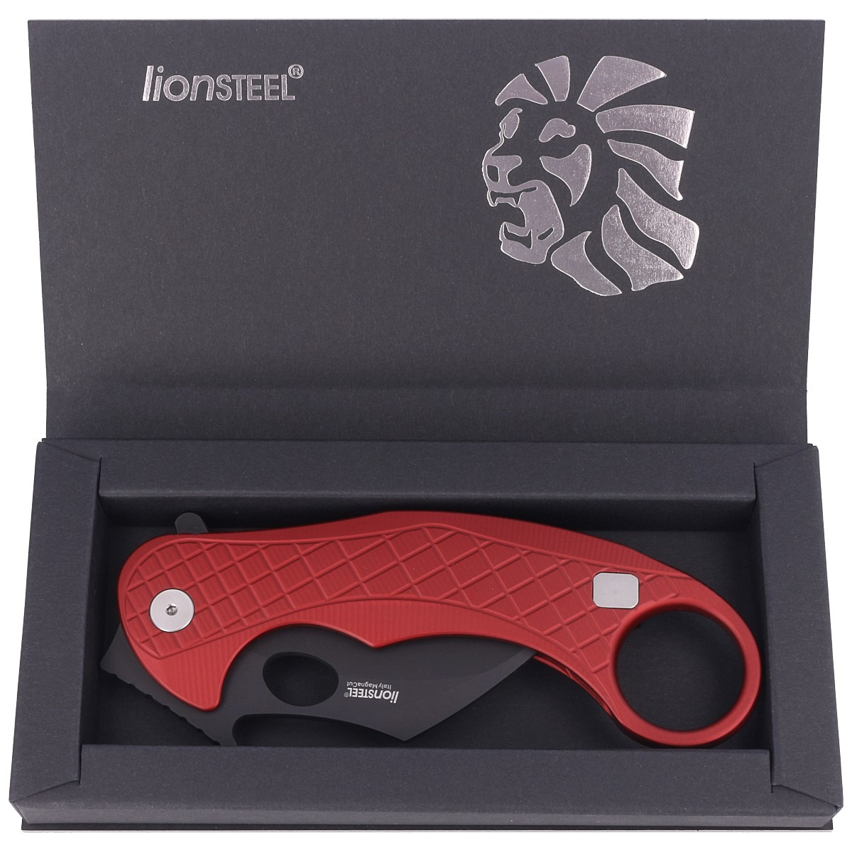 Nóż składany LionSteel L.E.One Karambit Red Aluminium, Chemical Black MagnaCut by Emerson Design (LE1 A RB)