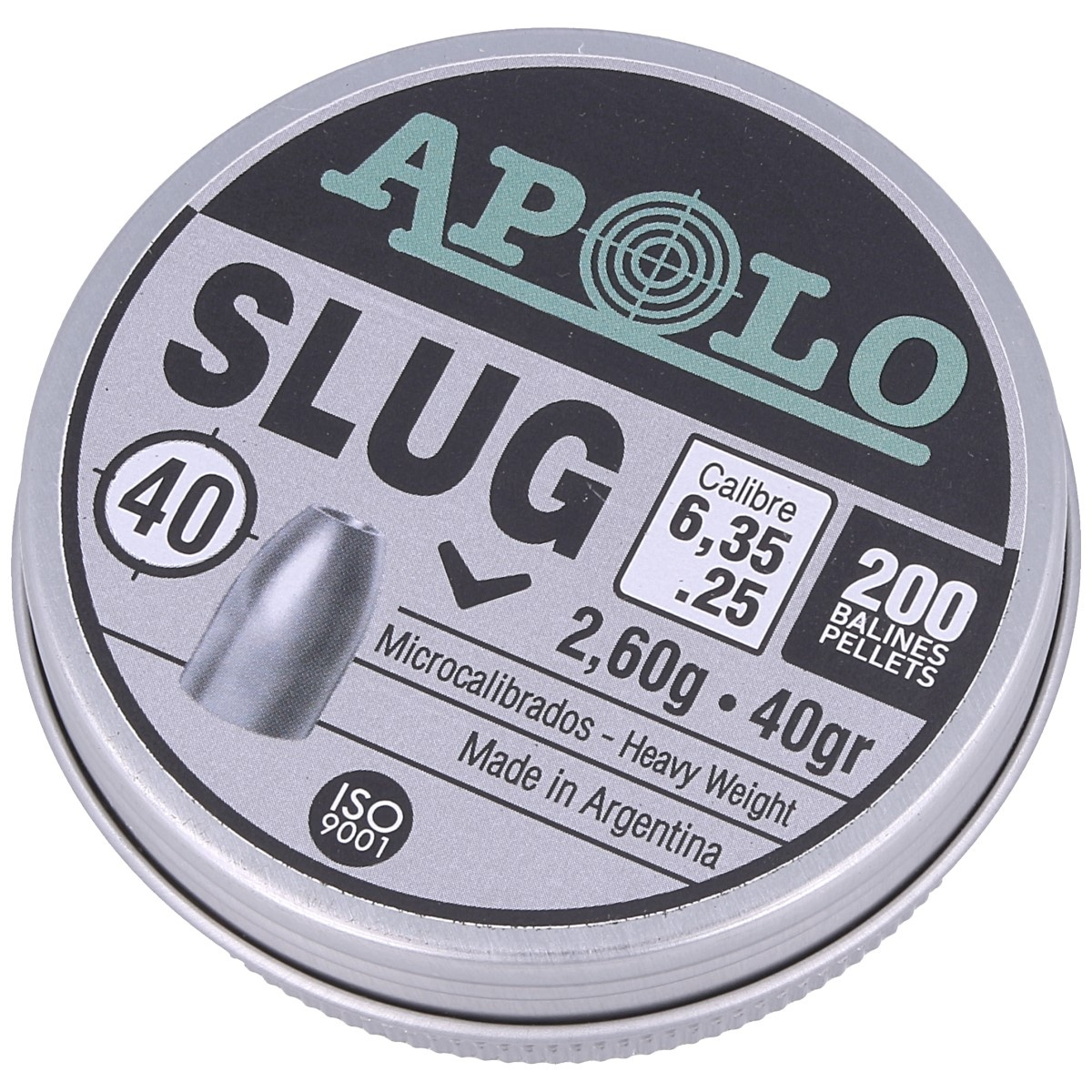 - Slug 40 jeden z najlepszych śrutów do obalania kal 6.35mm. Zaprojektowany do mocnych karabinów do celnego strzelania na duże odległości nawet 200m. Konstrukcja hollow point z dużym meplatem zapewnia maksymalną ekspansję transfer energii po uderzeniu w cel
