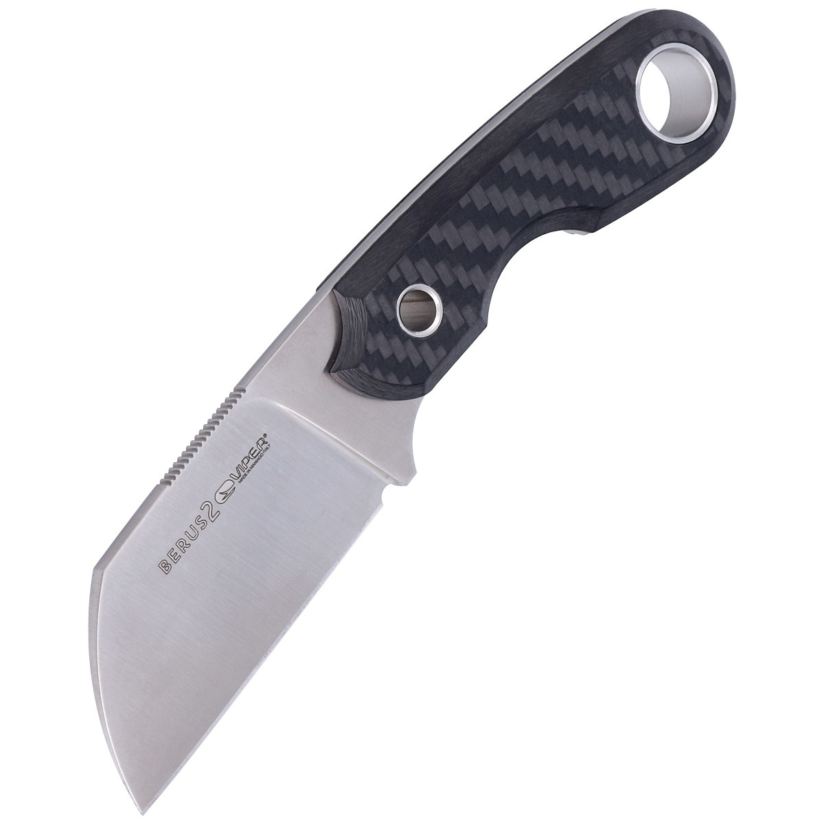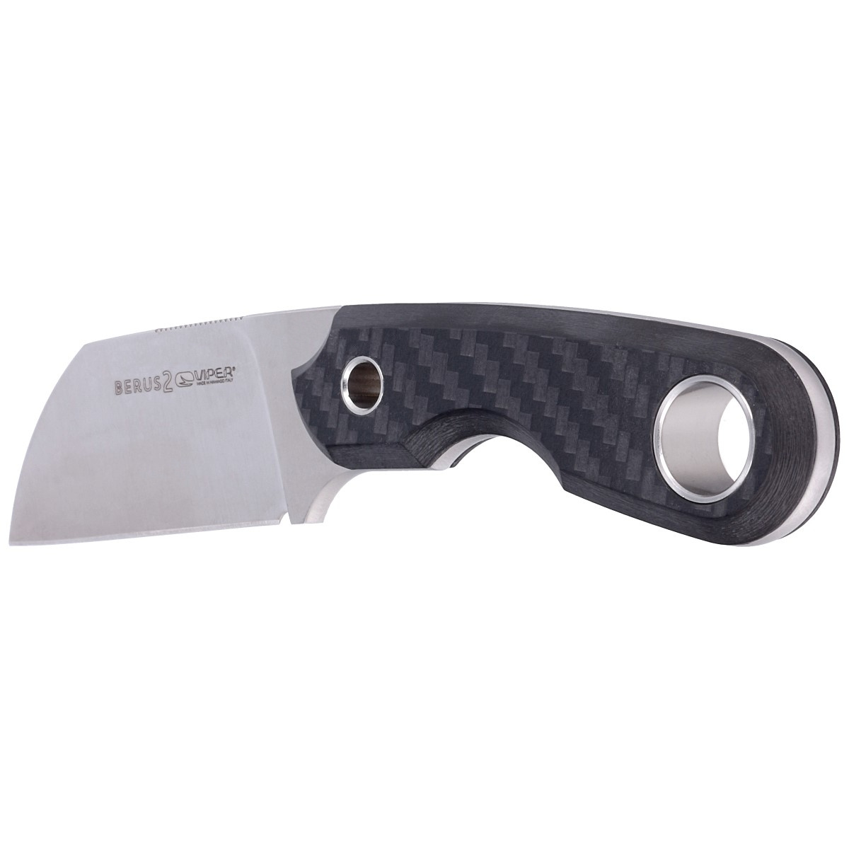 Berus 2 Carbon Fiber, design by Tommaso Rumici. Kuty z jednego kawałka stali, lekki 95 g kompaktowy wielofunkcyjny nóż włoskiej marki Viper. Charakteryzuje się wygodnym uchwytem oraz ostrym jak brzytwa, krótkim mocnym ostrzem z płaską krawędzią tnącą.