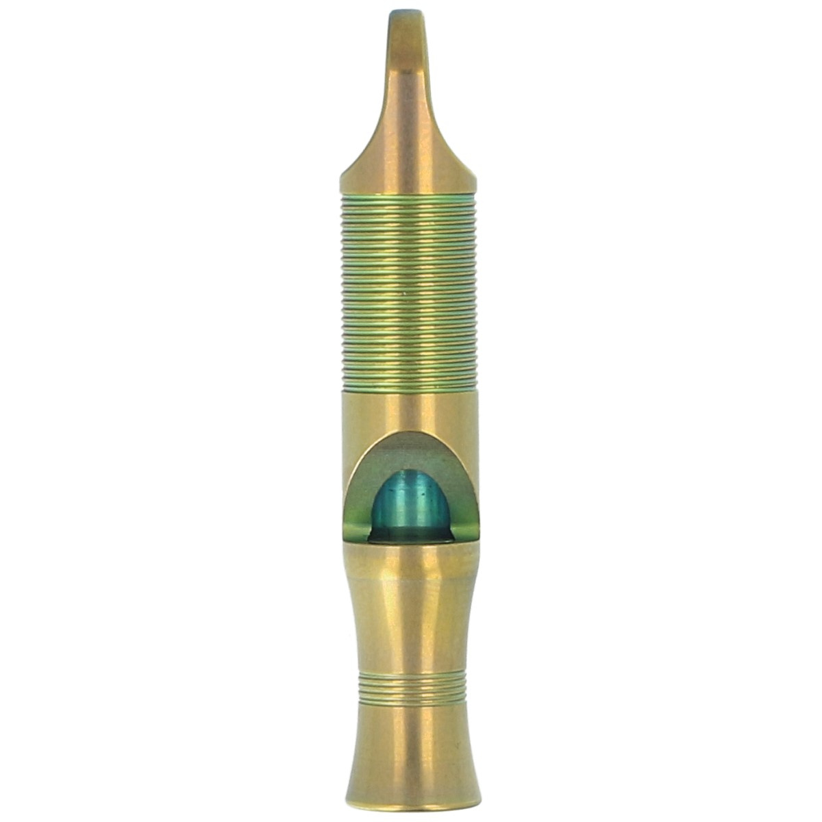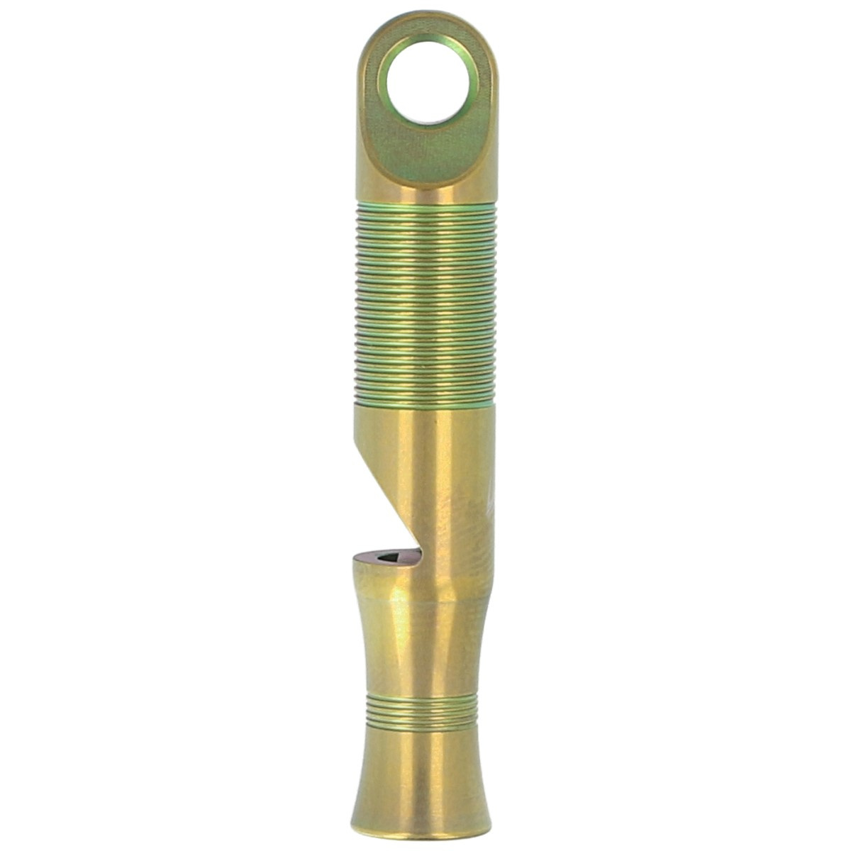 Whistle, Green Titanium wykonany z wytrzymałego anodyzowanego na zielono tytanu. Gwizdek sygnalizacyjny, który nigdy Cię nie zawiedzie tak, jak inne gwizdki. Emituje dźwięk o natężeniu sięgającym 120 decybeli, a ponieważ waży zaledwie kilka gram, jest doskonałym dodatkiem do breloka na klucze lub zestawu ratunkowego.