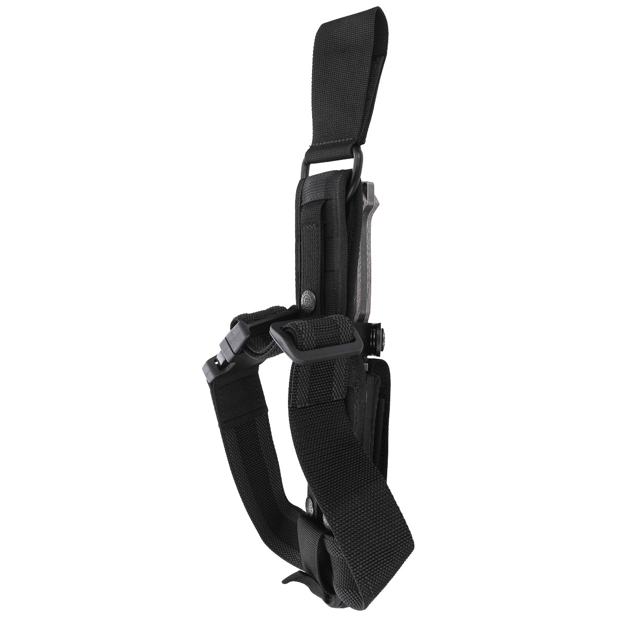 Pochwa - z dodatkową kieszenią na akcesoria: ostrzarkę lub krzesiwo. Wykonana z wodoodpornej Cordury®. Zapinana na zatrzaski kabura dobrze zabezpiecza nóż przed wypadnięciem. Umożliwia mocowanie pod taśmy systemu M.O.L.L.E. (Modular Lightweight Load-carrying Equipment), lub na pas. Dolna część pochwy z zapinaną na klamrę typu DuraFlex opaską udową z gumowym wzmocnieniem zapobiega przemieszczaniu się pochwy na udzie.