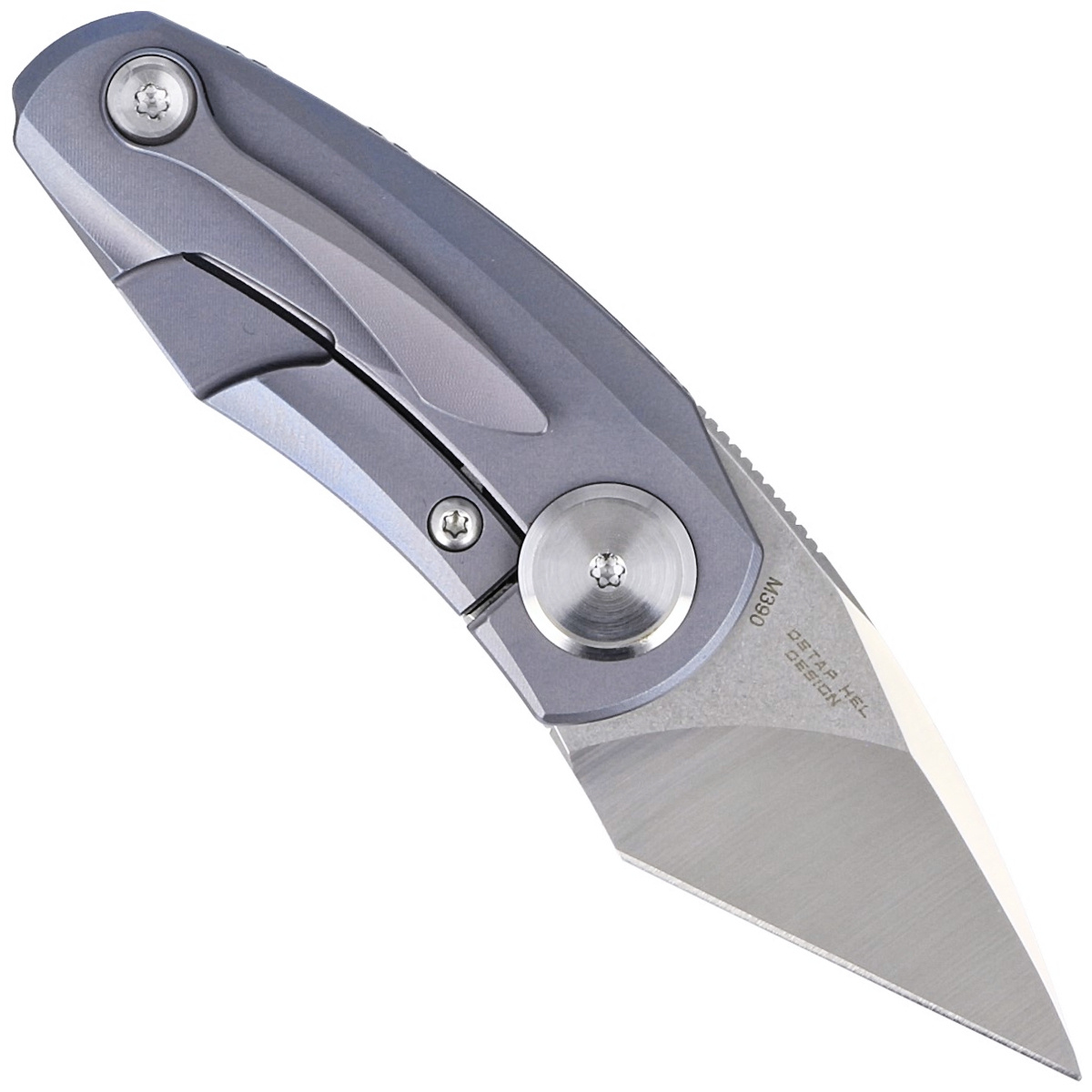 Tulip Frame Lock Blue Titanium, Stonewash / Satin elegancki nóż EDC polskiego projektanta i twórcy noży, Ostapa Hela. Klinga wzorowana na japońskich kiridashi, rękojeść z tytanu. Niezwykle lekki, z łatwością znikający w kieszeni czy torebce. Bestseller!