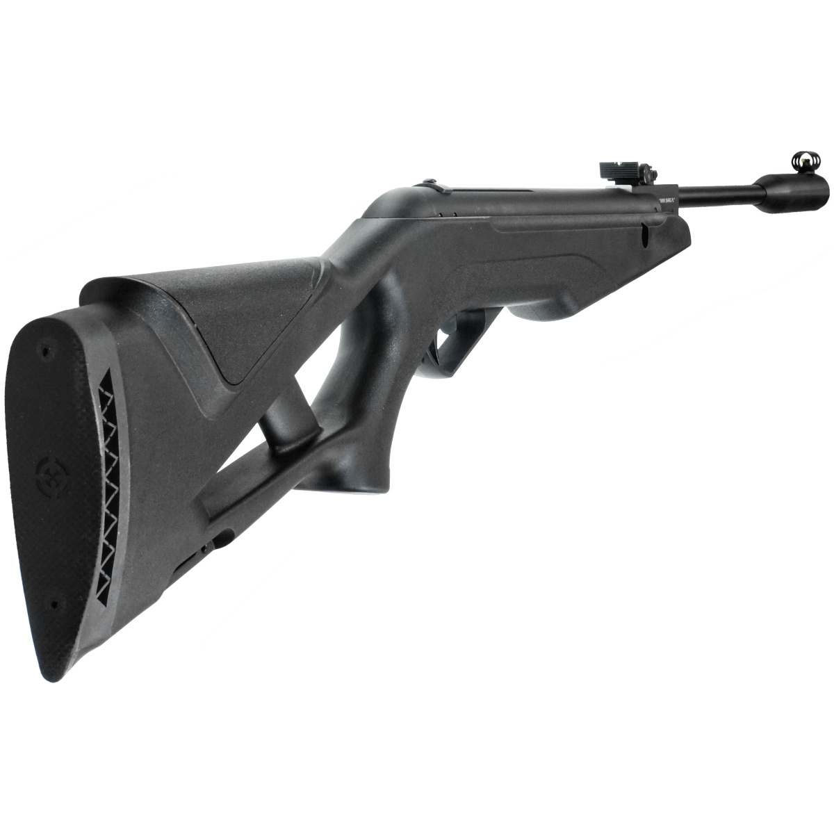 TruGlo - światłowodowe przyrządy celownicze z kontrastowymi kolorami włókien szklanych pozwalają na precyzyjne oddanie strzału również przy słabym oświetleniu. Stała muszka posiada metalową ochronę zabezpieczającą przed uszkodzeniem. Metalowa szczerbinka regulowana jest w pionie i poziomie.