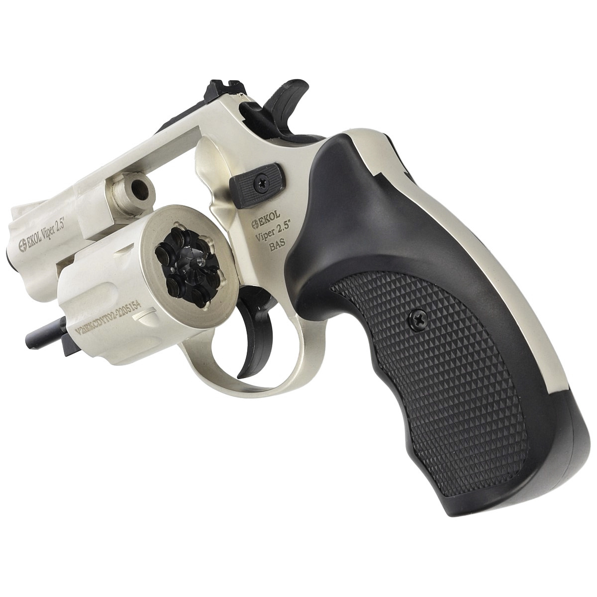 - EKOL Viper 2.5" .22L, satynowy rewolwer alarmowy na amunicję hukową bocznego zapłonu kal. 6mm long, sprawdzi się podczas samoobrony odstraszając potencjalnych napastników