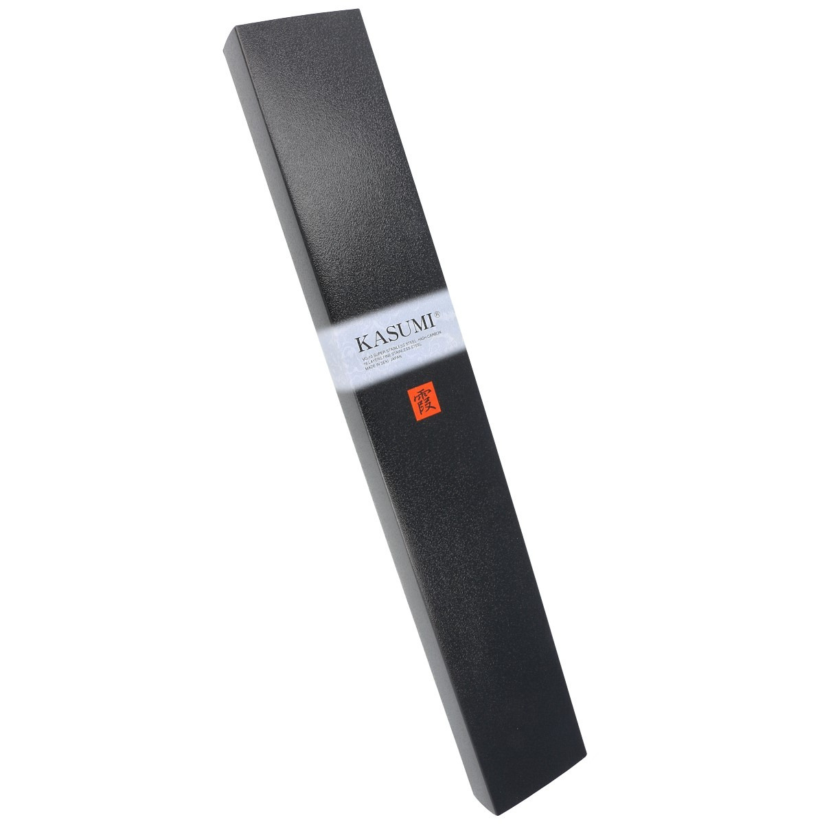 Kasumi Damascus Sashimi 21 z rdzeniem ze stali nierdzewnej VG-10 wykończony 32 warstwowym damastem. Wykonany tymi samymi metodami co miecze samurajskie, z wygodną, europejską rękojeścią z drewna pakka. Uwaga!!! Bardzo ostre!!! W 2002 roku noże "KASUMI" zdobyły nagrodę Design Plus Award na targach Ambiente Messe w Niemczech.