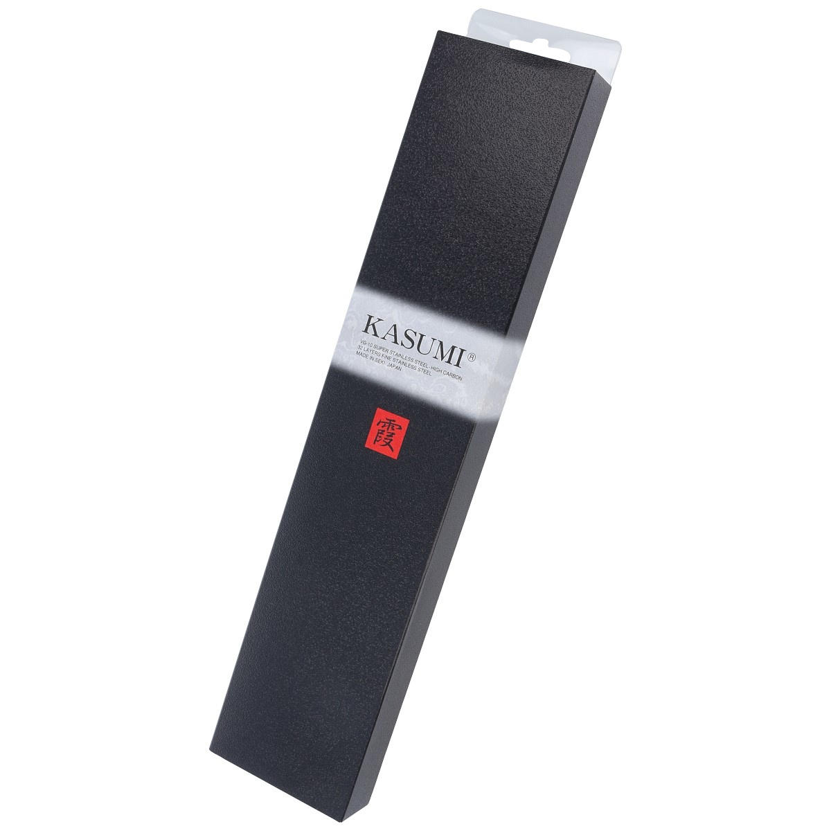 Kasumi to wiosenna mgła, dobrze znane zjawisko w Japonii, które osiada nad górami i osłoniętymi dolinami wiejskiej Japonii. Wzór na głowni stara się oddać piękno i tajemniczość tego zjawiska. Noże Kasumi produkowane są w Seki City słynącym z wytwarzania najwyższej jakości noży.