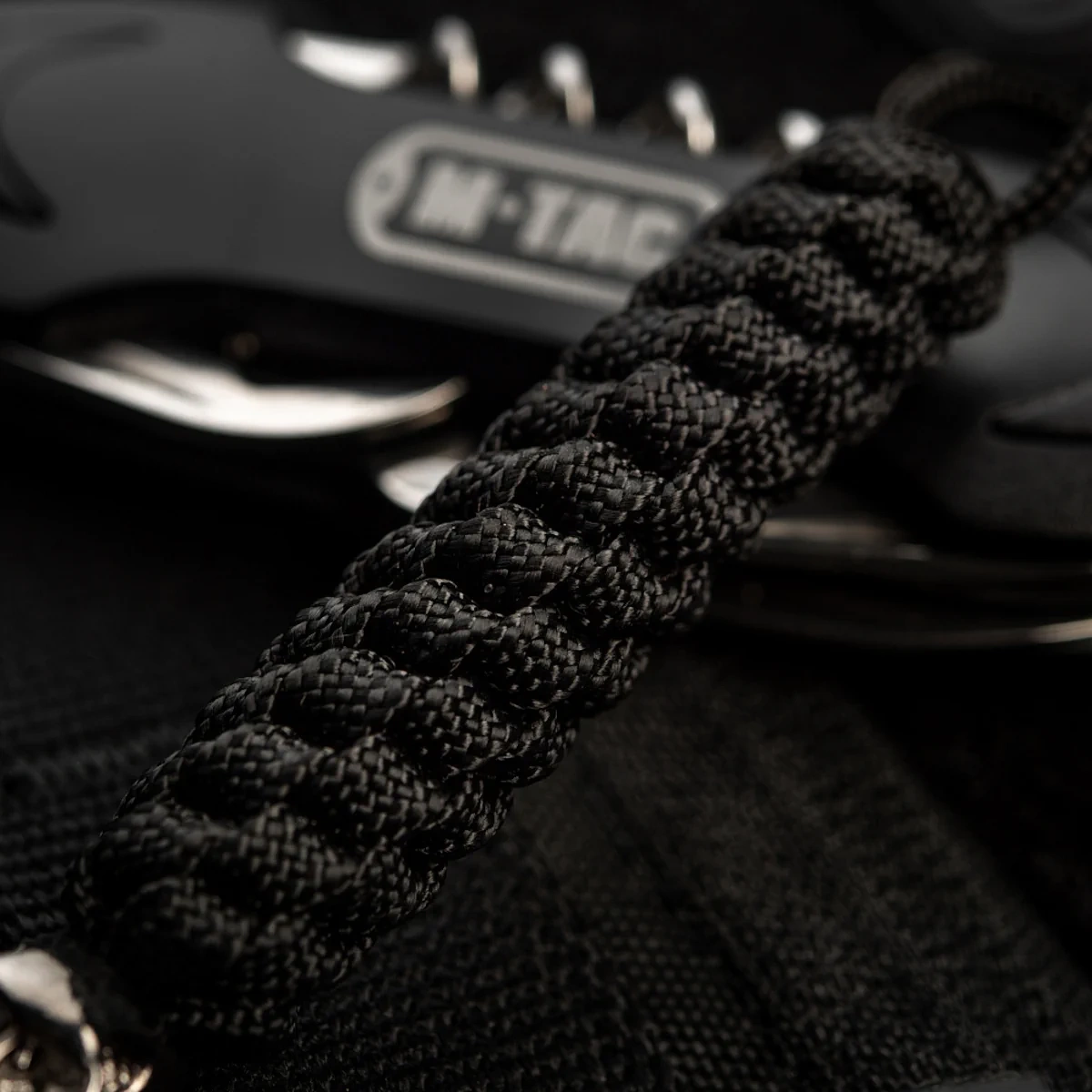 - M-Tac Helix Skull Black, przywieszka do noża, latarki, breloka, wykonana z paracordu, zakończona metalową czaszką. Oprócz walorów estetycznych, przedłuża rękojeść noża ułatwiając wyciągnięcie go z kieszeni.