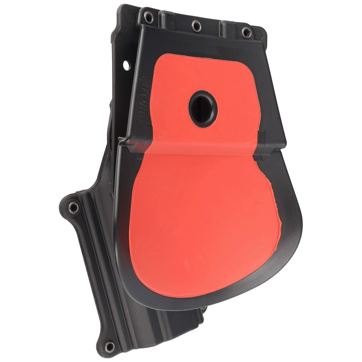 - 75D QL RP1 kabura zewnętrzna OWB Fobus, prawa z platformą transportową single rail platform RP1 wyposażoną w umożliwiający szybkie wypięcie kabury QuickLock system. Do pistoletów Ceska Zbrojovka CZ 75D, CZ SP 01. Canik 55. Sarsilmaz Defence. Mossberg MC2