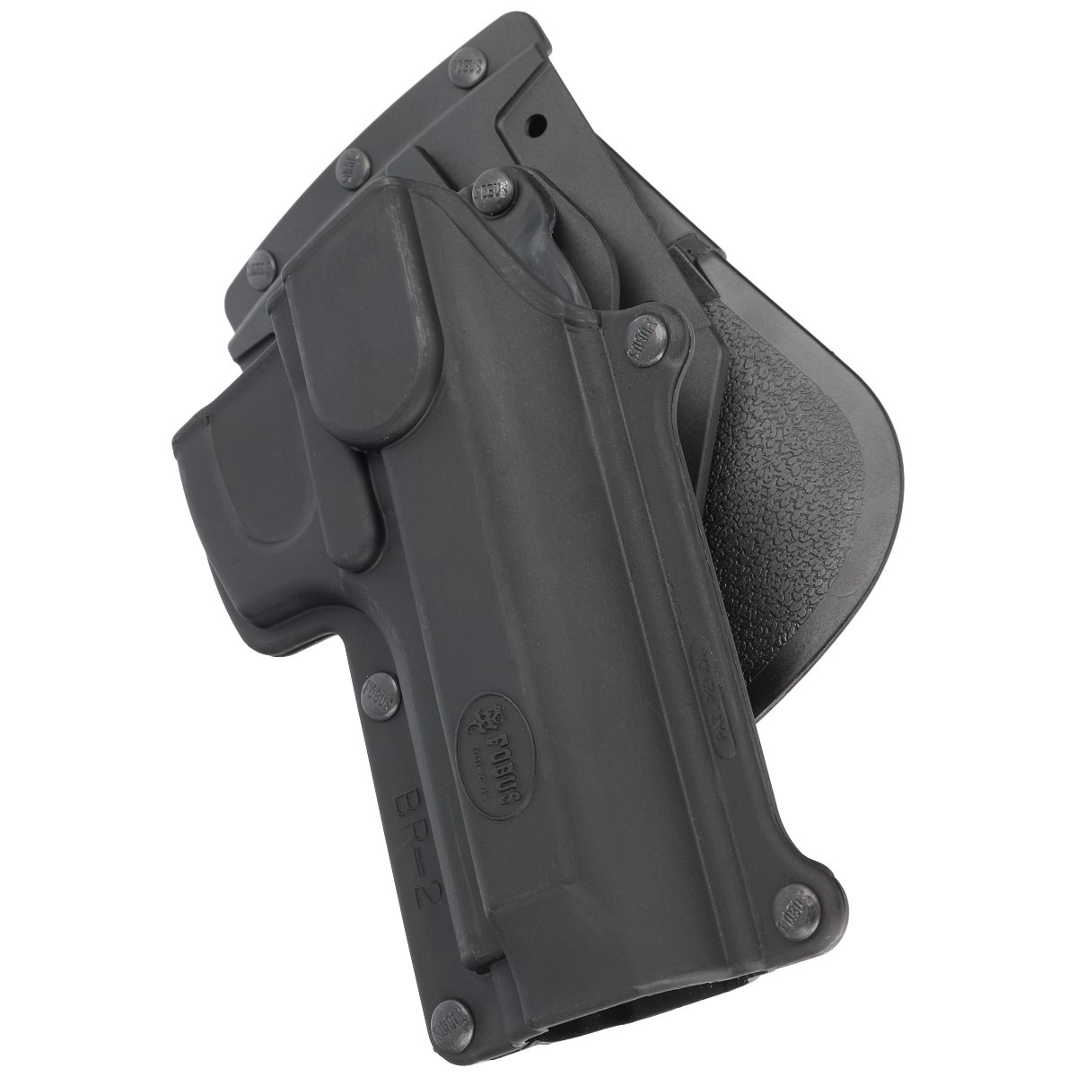 BR-2 QL RP1 kabura otwarta typ PRH (Passive Retention Holster) izraelskiej firmy Fobus z uniwersalną platformą transportową single rail platform (RP1) wyposażoną w umożliwiający szybkie wypięcie kabury adapter QuickLock. Niski profil ułatwia ukrycie broni, zwiększając komfort jej przenoszenia. Kabura zabezpiecza broń przed uszkodzeniem, nie ma tendencji do przemieszczania się. Wykonana metodą wtryskową z odpornego na zarysowania, udar oraz temperaturę nylonu, tworzywa sztucznego o dużej gęstości. Dostępna w wersji dla praworęcznych.