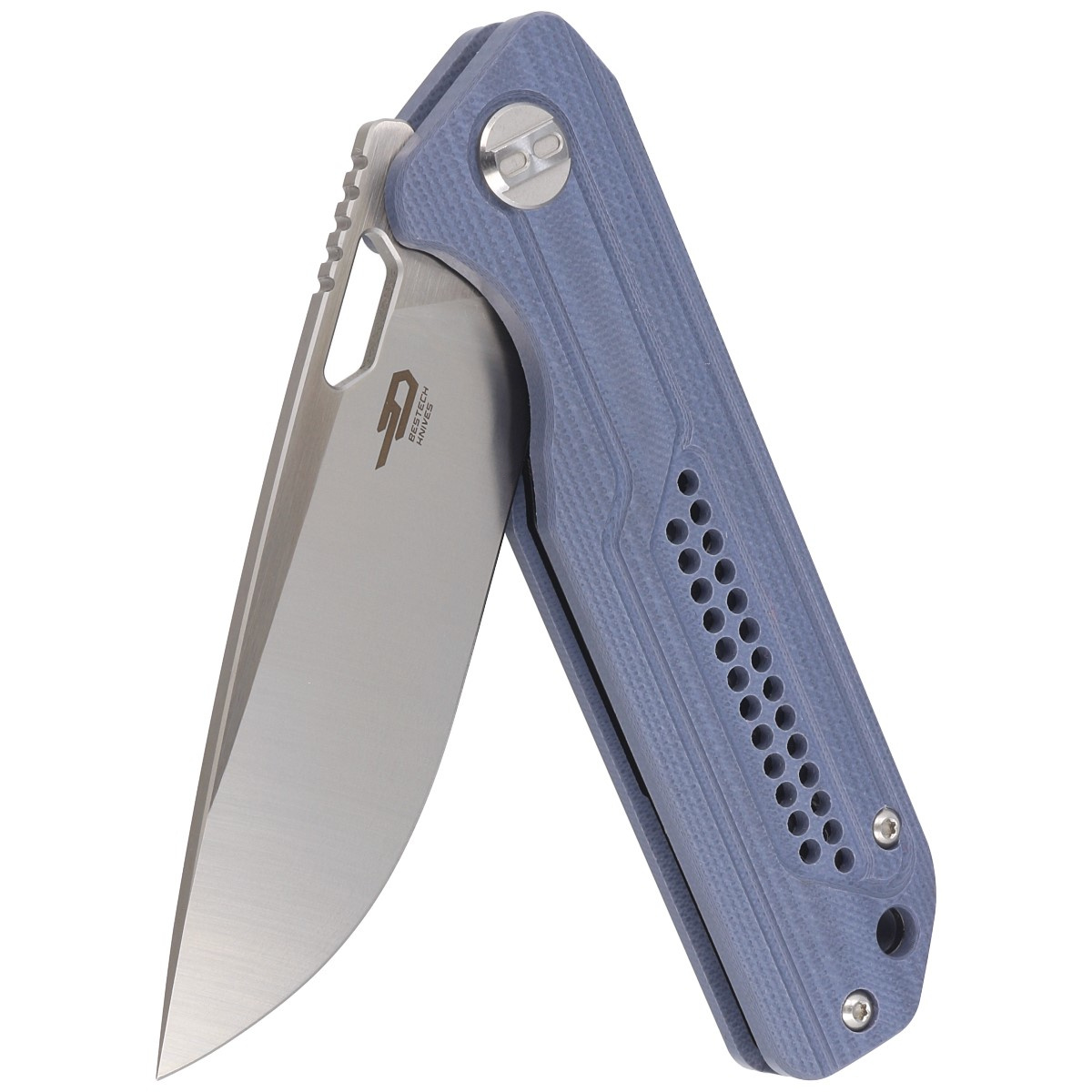 Głownia - szeroka, typu Drop Point z eleganckim wykończeniem Satin. Wydatny brzusiec wydłuża długość krawędzi tnącej w stosunku do długości klingi zbiegając się w kierunku ostrego jak igła czubka noża. Grubość klingi zapewnia wysoką wytrzymałość podczas gdy wysoki, płaski szlif daje doskonałą geometrię krawędzi tnącej oraz ekstremalną wydajność cięcia. Łożyska kulkowe wspomagają otwarcie ostrza za pomocą szybkiej płetwy flippera (index-finger flipper) po otwarciu pełniącej funkcję jelca. Nóż możemy również otworzyć przy pomocy owalnego otworu w klindze (thumb hole). Fragment grzbietu klingi pokryto upper jimping, karbowanym oparciem pod kciuk ułatwiającym kontrolę nad nożem. Całość blokowana jest sprawdzoną i popularną blokadą liner lock.