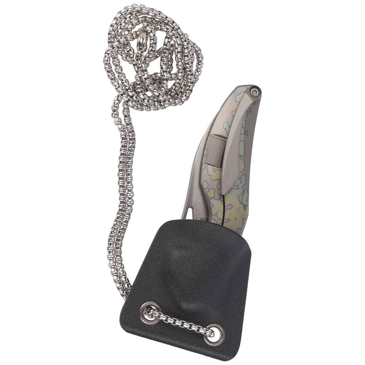 The Reticulan Grey / Colorful Titanium, Stonewash / Satin nieduży i elegancki nóż składany z pochwą przystosowaną do zawieszania na szyi. Projekt znanego knifemakera i designera Elijah Ishama. Wygląd The Reticulan wyraźnie podkreśla styl projektowania Elijah Ishama. Jego projekty są często wzbogacone o artystyczne organiczne kształty i faliste linie. Bez wątpienia The Reticulan to niezwykły nóż, który wyróżni Cię z tłumu!