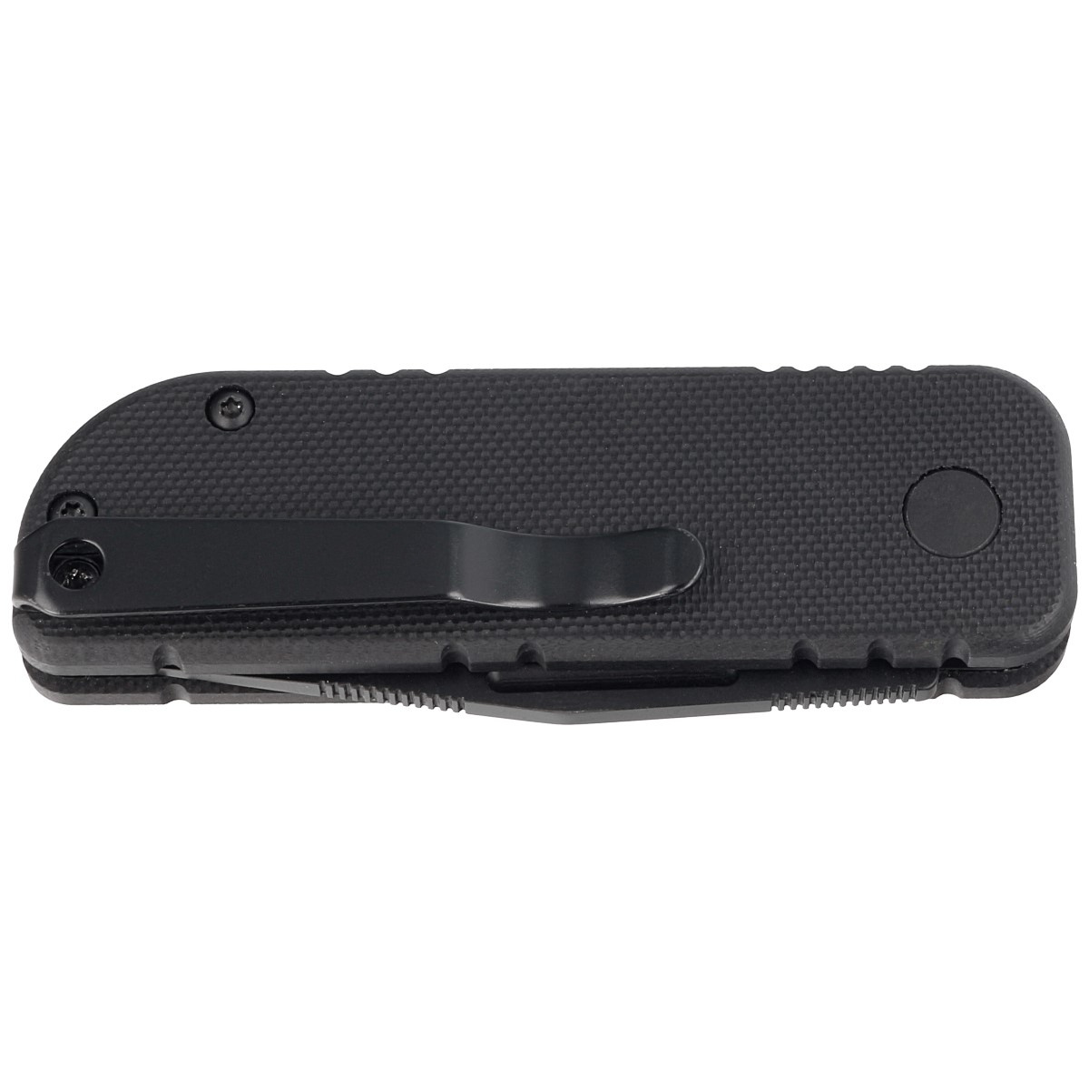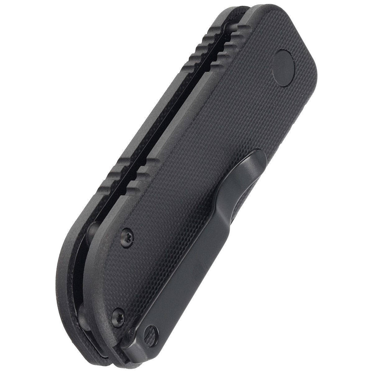 Rękojeść - okładziny z G10, praktycznie niezniszczalnego tworzywa niewrażliwego na warunki atmosferyczne, odpornego na chemikalia i uszkodzenia mechaniczne. Fazowane krawędzie okładek eliminują ostre ranty a teksturowanie powierzchni poprawia pewność uchwytu. Otwarta konstrukcja tzw. open-backed bez typowego backspacera, mocowana do siebie stalowymi tulejami dystansowymi ułatwia czyszczenie. Prosta, pewna konstrukcja daje pewność wieloletniego użytkowania. Dwupozycyjny (prawa/lewa) metalowy klips deep carry pozwala przenosić dyskretnie nóż w kieszeni w pozycji tip-up (czubkiem ostrza do góry).
