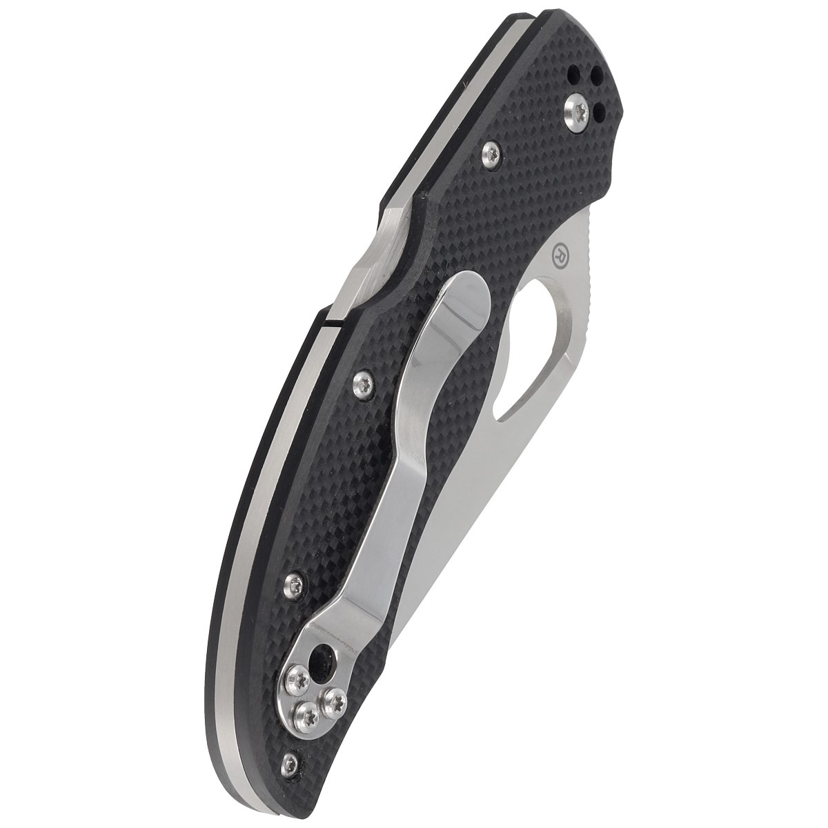 Rękojeść - okładziny z czarnego G10 (włókno szklane prasowane pod ciśnieniem z syntetyczną żywicą), teksturowane dla poprawienia pewności uchwytu. Całość usztywnia solidny backspacer ze stali. Prosta, solidna konstrukcja daje pewność wieloletniego użytkowania. Głębokie podcięcie na palec (fore finger groove) poprawia pewność uchwytu. Klips klepsydrowy z polerowanej stali możliwością mocowania w czterech płaszczyznach (góra/dół, prawo/lewo) 4-way clip positions. W tylnej części rękojeści lanyard hole, otwór na linkę.