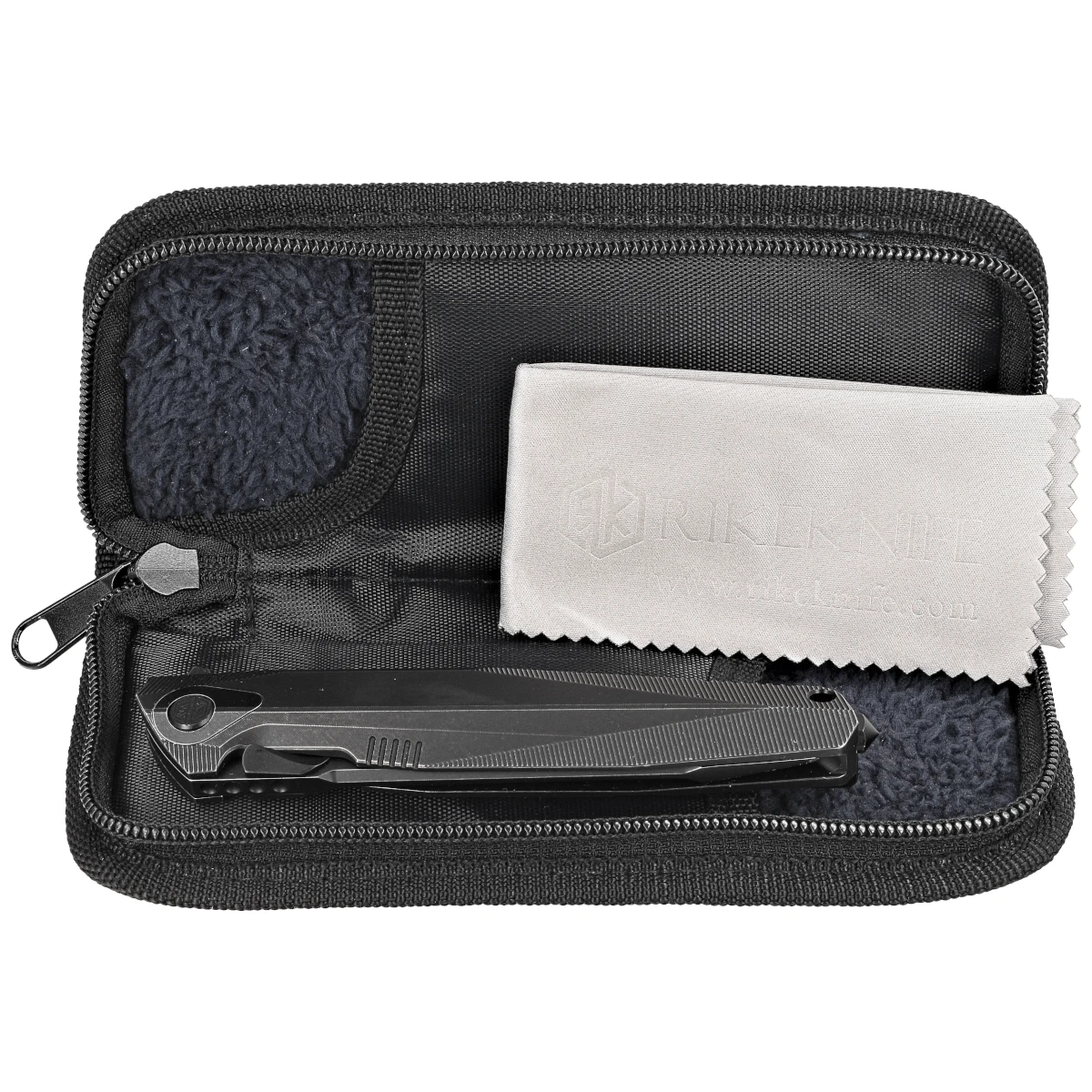 Futerał - nóż zapakowano w zapinany zamkiem nylonowy miękki pouch z logo marki służący do bezpiecznego przenoszenia i przechowywania foldera.