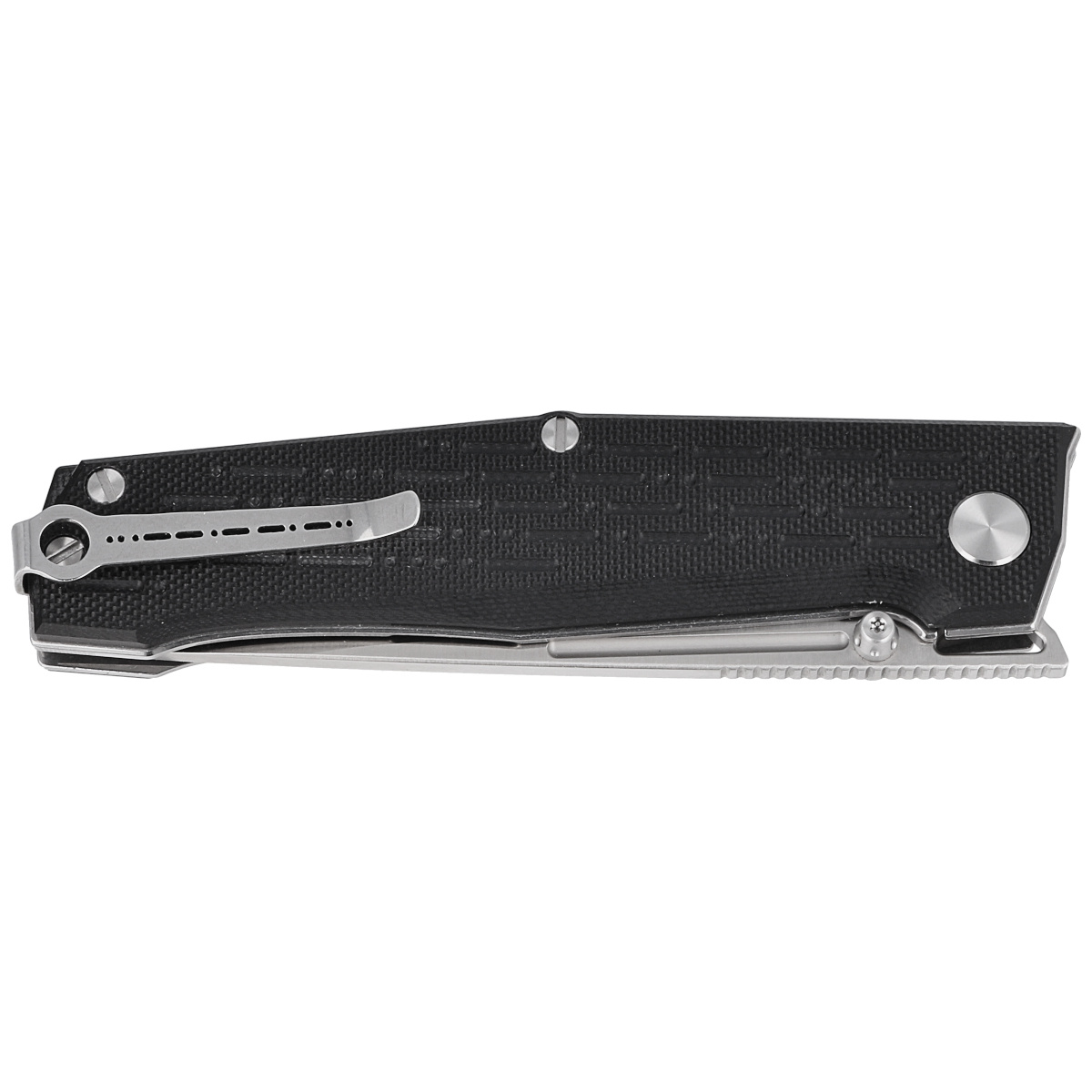Głownia - typu Drop Point z eleganckim wykończeniem Satin. Lekko zakrzywiona krawędź tnąca zbiega się w kierunku ostrego jak igła czubka noża. Grubość klingi zapewnia wysoką wytrzymałość podczas gdy wysoki, płaski szlif daje doskonałą geometrię krawędzi tnącej oraz ekstremalną wydajność cięcia. Podkładki z fosforobrązu wspomagają płynne otwarcie ostrza, które można otworzyć za pomocą obustronnego kołka w klindze (dual thumb stud) wycięcia nail nick lub płetwy front flippera. Dzięki temu mogą z noża bez problemu korzystać osoby prawo i leworęczne. Aby zachować pełną kontrolę nad ostrzem, grzbiet klingi pokryto upper jimping, karbowanym oparciem pod kciuk. Całość blokowana jest przez prostą i sprawdzoną blokadę Liner Lock.