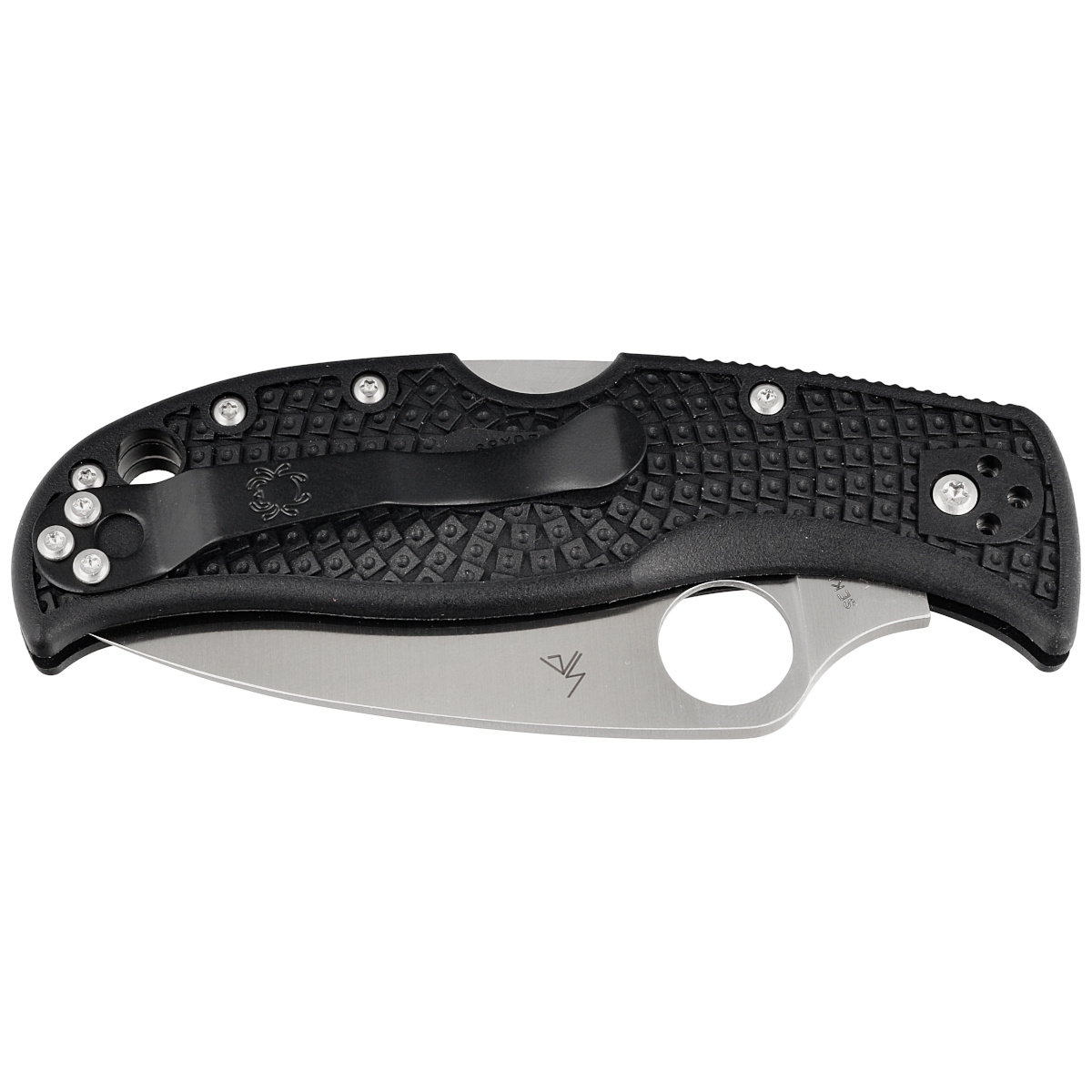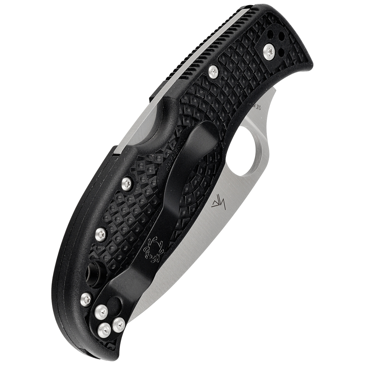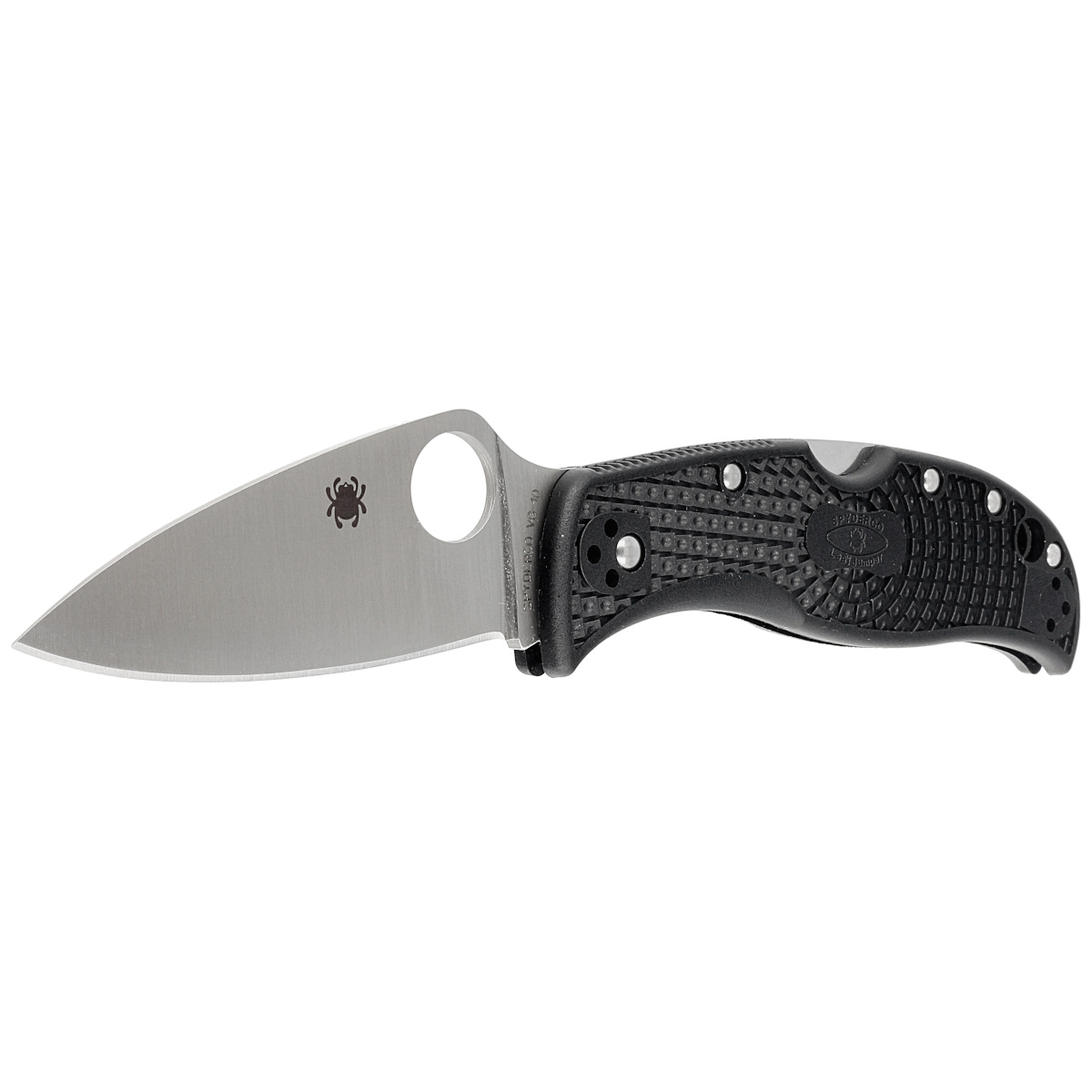 Głownia - o profilu Leaf (liść) z ekstremalnie ostrym czubkiem. Zakrzywiona krawędź tnąca na całej długości zapewnia wyjątkową wydajność cięcia z pełną siłą, przenosząc moc na sztych ostrza, gwarantuje lepszą wytrzymałość punktową. Wykonana z hartowanej w przedziale 59-61 HRC japońskiej stali nierdzewnej VG-10. Ostrze gładkie Plain wyprowadzono szlifem płaskim pełnym (Full Flat Grind). Powiększone 14 mm okrągłe wycięcie SpyderHole umożliwia otwarcie klingi również w rękawicy. Rampa na grzbiecie głowni ustawia kciuk, dając solidne podparcie oraz ułatwia operowanie folderem. Solidna blokada głowni Back-Lock.