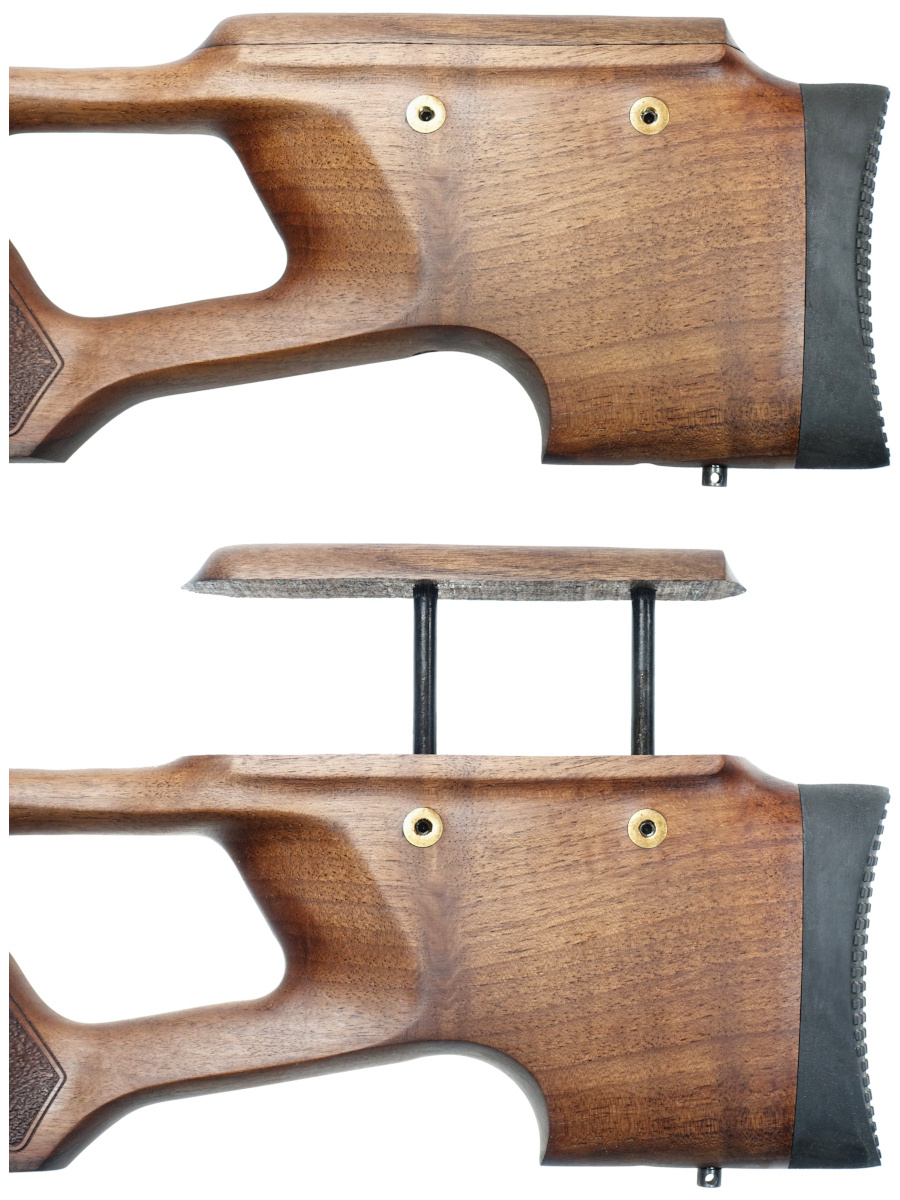 Osada - przystosowana dla osób prawo i leworęcznych z otworem na kciuk TH (ThumbHole). Wykonana z wyselekcjonowanego tureckiego drewna orzechowego. Profilowana poduszka policzkowa ułatwia złożenie się jak i celowanie. Gumowa stopka absorbująca energię strzału.